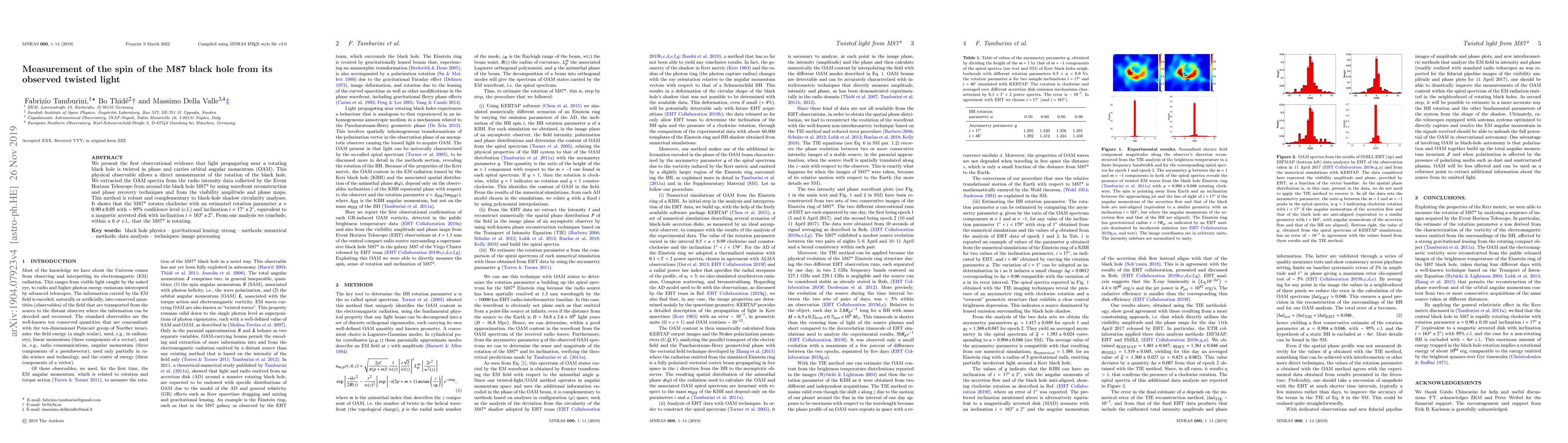 We present the first observational evidence that light propagating near a rotating black hole is twisted in phase and carries orbital angular momentum (OAM). This physical observable allows a direct measurement of the rotation of the black hole. We extracted the OAM spectra from the radio intensity data collected by the Event Horizon Telescope from around the black hole M87* by using wavefront reconstruction and phase recovery techniques and from the visibility amplitude and phase maps. This method is robust and complementary to black-hole shadow circularity analyses. It shows that the M87* rotates clockwise with an estimated rotation parameter $a=0.90\pm0.05$ with $\sim 95\%$ confidence level (c.l.) and inclination $i=17^\circ \pm2^\circ$, equivalent to a magnetic arrested disk with inclination $i=163^\circ\pm2^\circ$. From our analysis we conclude, within a 6 $\sigma$ c.l., that the M87* is rotating.