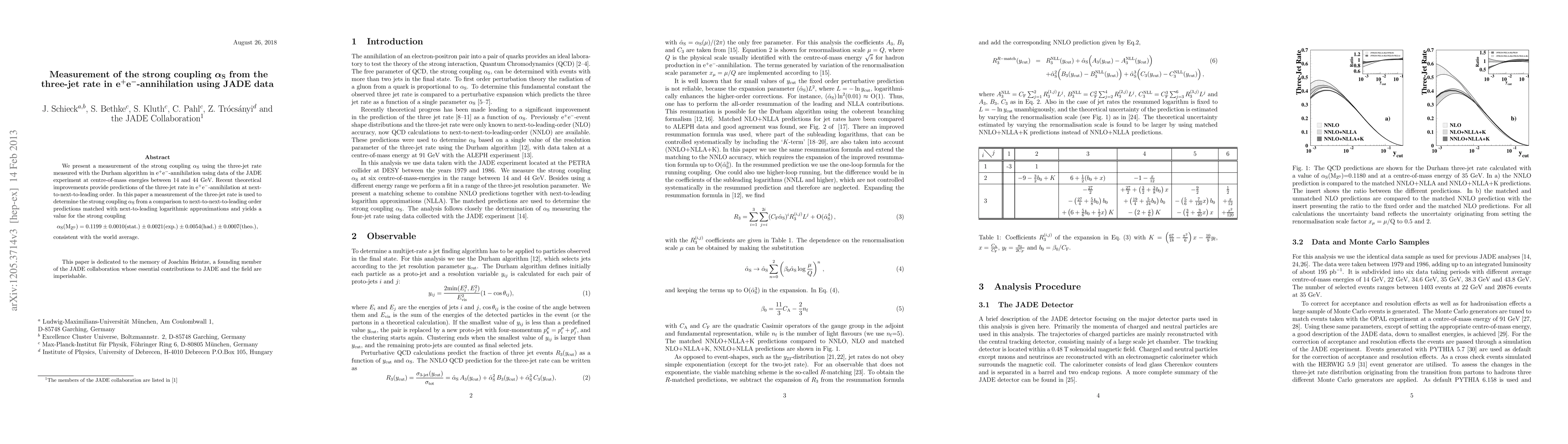 This paper measures the strong coupling constant alpha_S using the three-jet rate from e+e- annihilation data from the JADE experiment, yielding alpha_S(MZ) = 0.1199 ± 0.0010 (stat.) ± 0.0021 (exp.) ± 0.0054 (had.) ± 0.0007 (theo.), consistent with the world average.