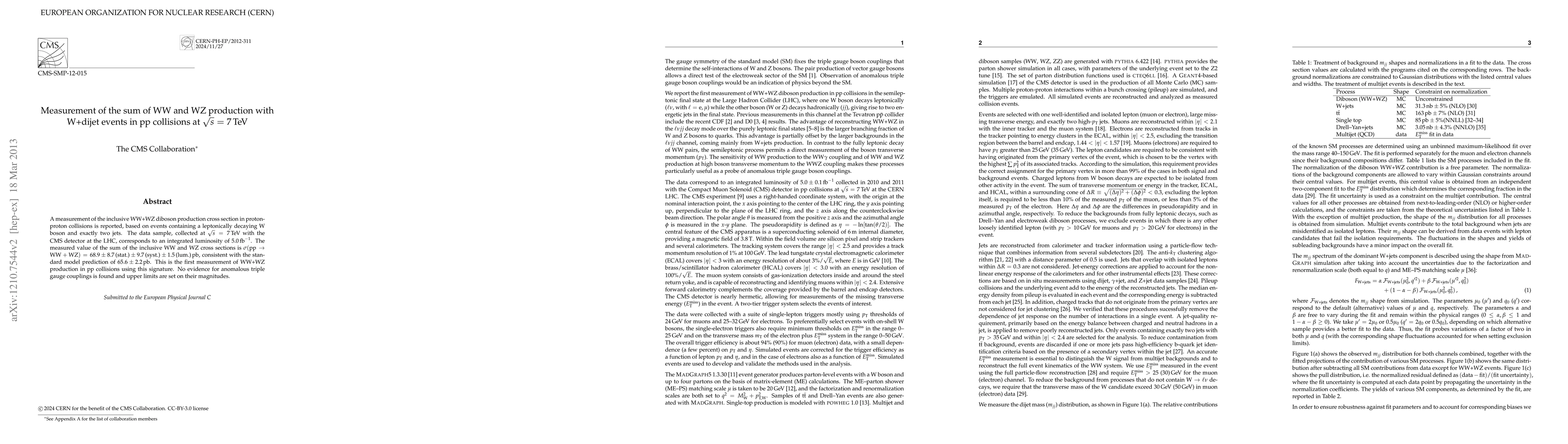 This paper reports the first measurement of WW+WZ diboson production in proton-proton collisions using a W+dijet event signature at sqrt(s) = 7 TeV, yielding a cross section of 68.9 ± 8.7 pb, consistent with the Standard Model prediction. No anomalous triple gauge couplings are observed.