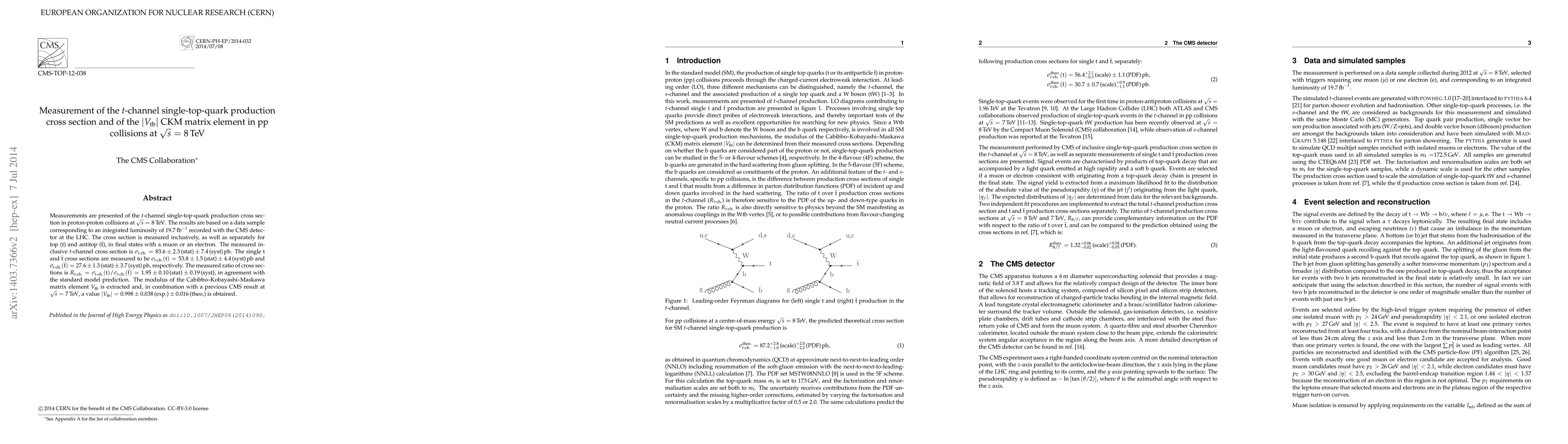 This paper reports measurements of the t-channel single-top-quark production cross section in proton-proton collisions at 8 TeV, yielding an inclusive cross section of 83.6 ± 2.3 pb, and separately for top and antitop quarks, with values of 53.8 ± 1.5 pb and 27.6 ± 1.3 pb, respectively. The study also determines the modulus of the Vtb CKM matrix element, obtaining |Vtb| = 0.998 ± 0.038 (exp.) ± 0.016 (theo.).