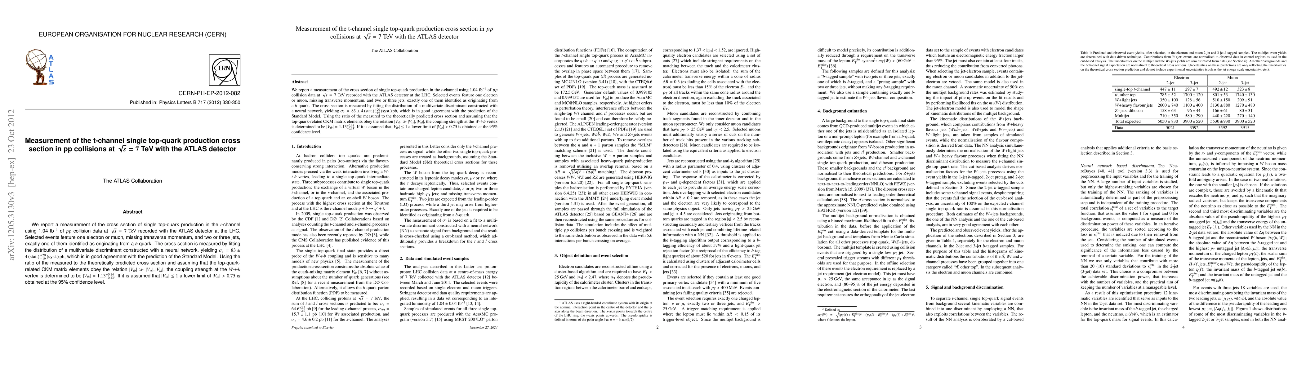 This paper measures the t-channel single top-quark production cross section at 7 TeV using the ATLAS detector, finding σ(t) = 83 ± 4 (stat.) ± 19 (syst) pb, consistent with Standard Model predictions, and determines |V(tb)| = 1.13 ± 0.14, establishing a lower limit of |V(tb)| > 0.75 at 95% confidence level.