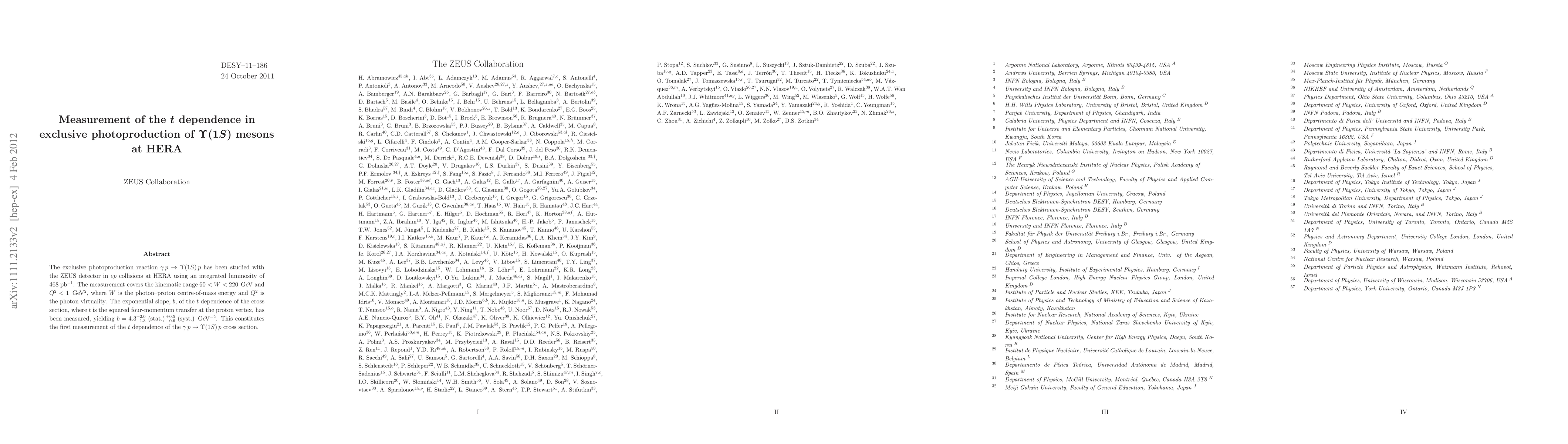 The ZEUS detector at HERA measured the t dependence in exclusive photoproduction of Upsilon(1S) mesons, finding an exponential slope b of 4.3 ± 2.0 (stat.) ± 0.5 (syst.) GeV^-2, providing the first such measurement for the gamma p -> Upsilon(1S) p reaction.