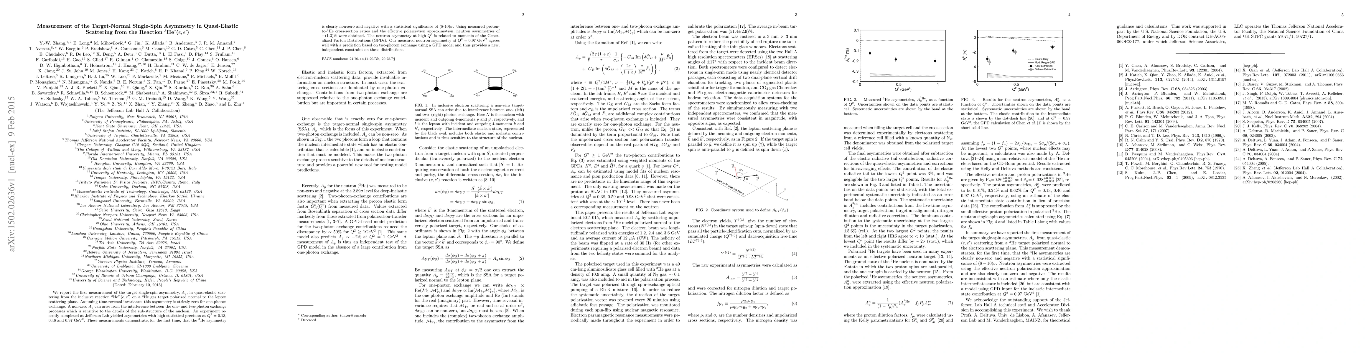This paper reports the first measurement of the target single-spin asymmetry $A_y$ in quasi-elastic scattering from $^3$He polarized normal to the lepton scattering plane, showing a non-zero, negative asymmetry at high precision. The findings provide new constraints on Generalized Parton Distributions and suggest interference effects from one- and two-photon exchange processes.