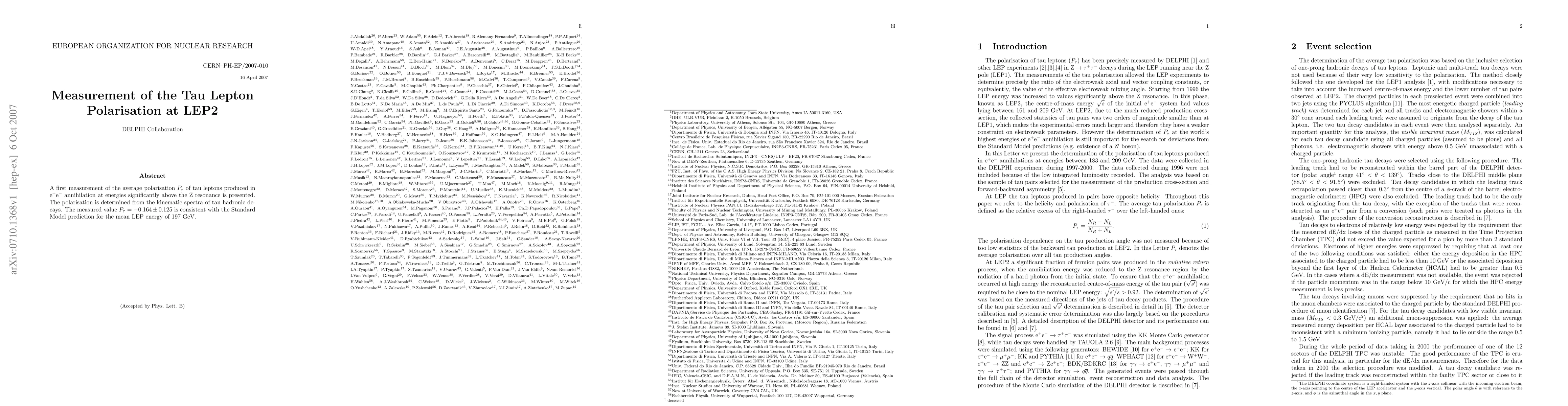 A first measurement of the average polarisation P_tau of tau leptons produced in e+e- annihilation at energies significantly above the Z resonance is presented. The polarisation is determined from the kinematic spectra of tau hadronic decays. The measured value P_tau = -0.164 +/- 0.125 is consistent with the Standard Model prediction for the mean LEP energy of 197 GeV.