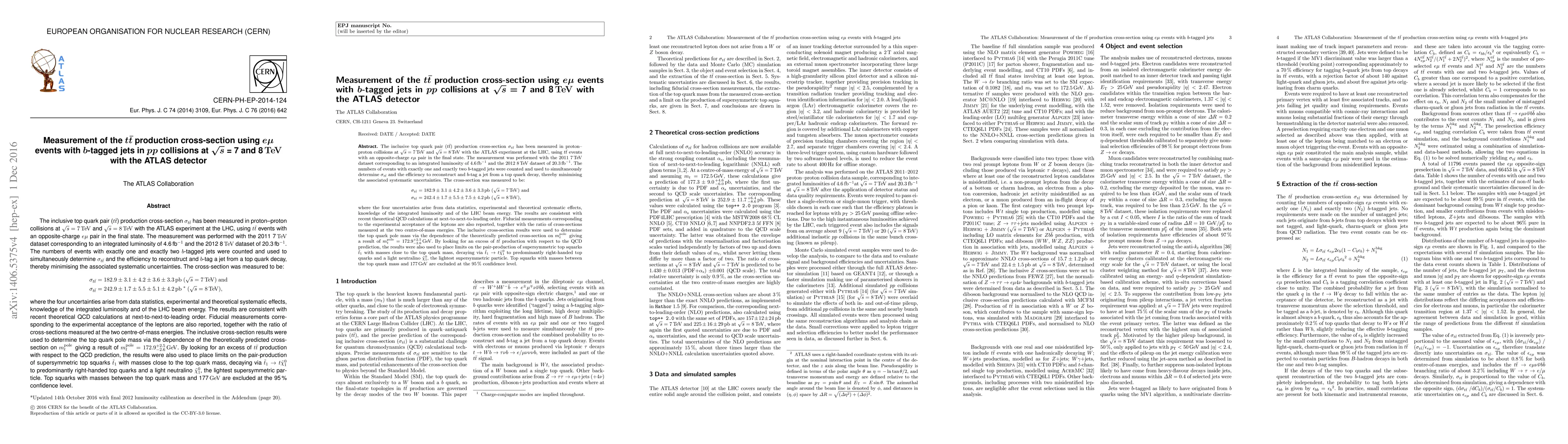 The ATLAS experiment measured the inclusive $t\bar{t}$ production cross-section at $\sqrt{s}=7$ and 8 TeV, finding $\sigma_{t\bar{t}}=182.9\pm 3.1\pm 4.2\pm 3.6\pm 3.3$ pb and $\sigma_{t\bar{t}}=242.9\pm 1.7\pm 5.5\pm 5.1\pm 4.2$ pb respectively, consistent with next-to-next-to-leading order QCD calculations.