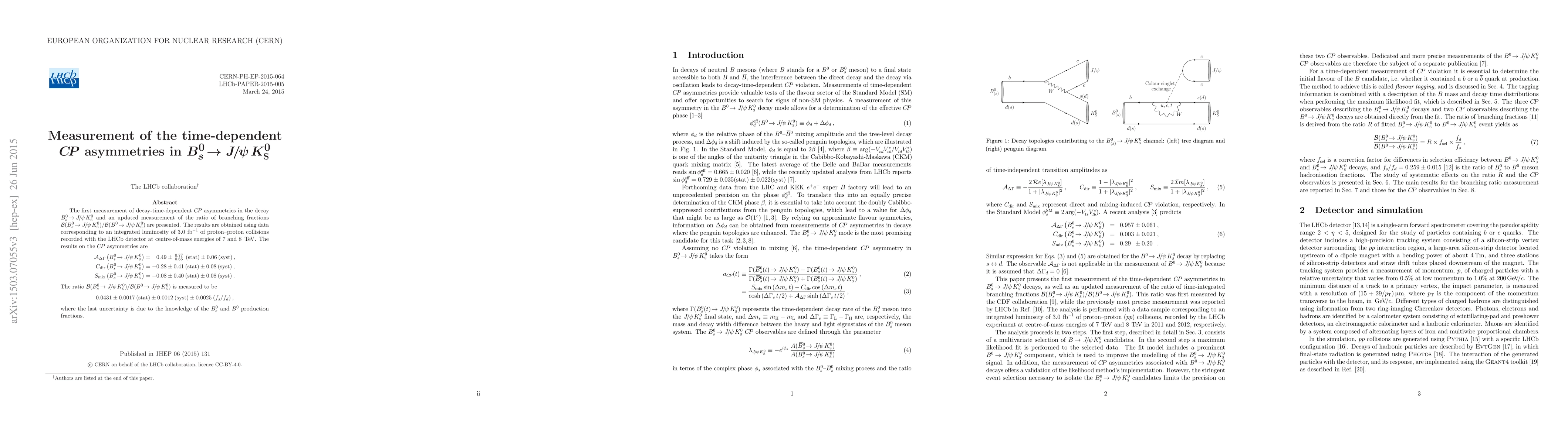 This paper reports the first measurement of decay-time-dependent CP asymmetries in the decay $B_s^0\rightarrow J/\psi K_{\rm S}^0$ and an updated ratio of branching fractions. The results show no significant CP violation and provide a precise measurement of the ratio $\mathcal{B}(B_s^0\rightarrow J/\psi K_{\rm S}^0)/\mathcal{B}(B_d^0\rightarrow J/\psi K_{\rm S}^0)$.