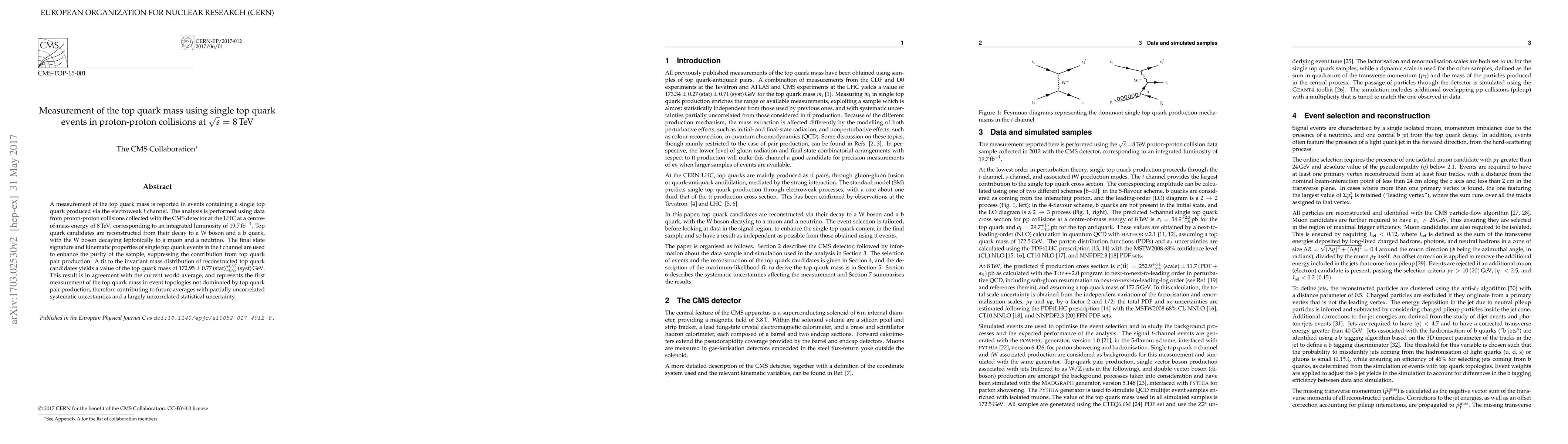This study measures the top quark mass using single top quark events in proton-proton collisions at 8 TeV with the CMS detector, yielding a mass of 172.95 ± 0.77 (stat) ± 0.97/-0.93 (syst) GeV, complementing the current world average with unique systematic and statistical uncertainties.