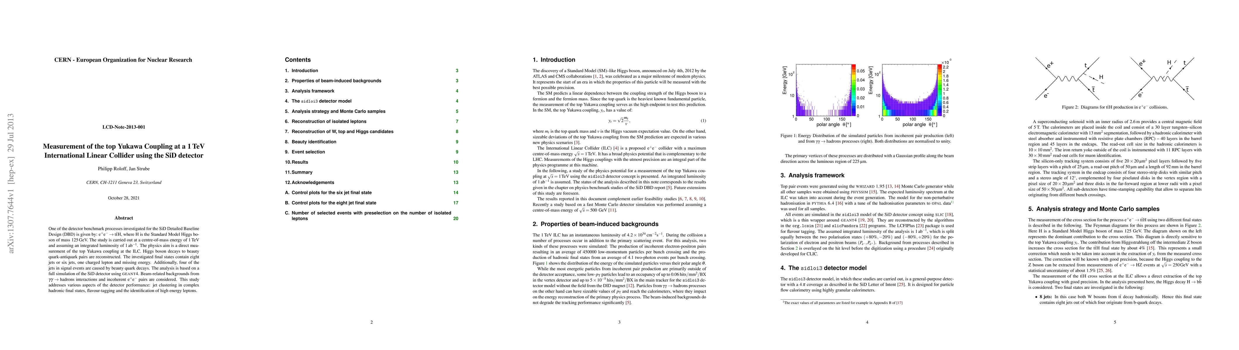 This paper investigates the measurement of the top Yukawa coupling at a 1 TeV International Linear Collider using the SiD detector, focusing on the process e+e- -> ttH. The study aims to reconstruct Higgs boson decays to beauty quark pairs in final states with multiple jets and missing energy, assessing detector performance in complex hadronic environments.