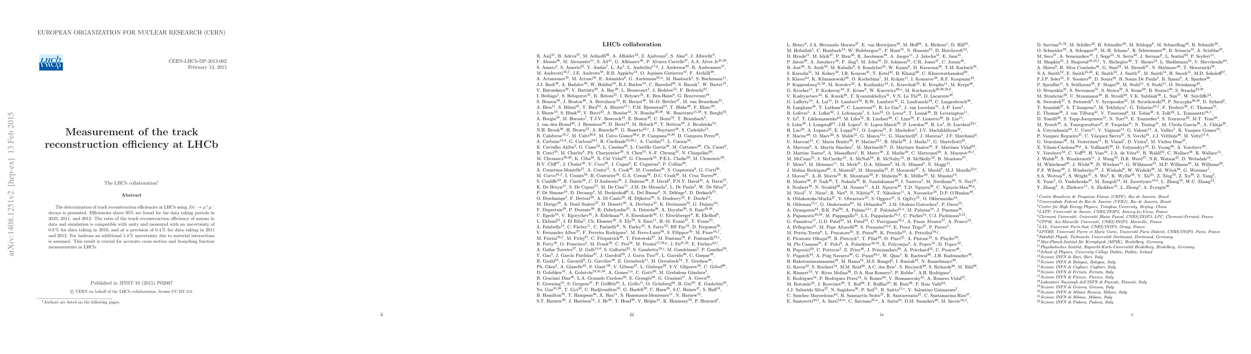 Researchers at LHCb achieved track reconstruction efficiencies above 95% using $J/ heta ightarrow heta^{+} heta^{-}$ decays, with a precision of 0.4% for data taking in 2011-2012.