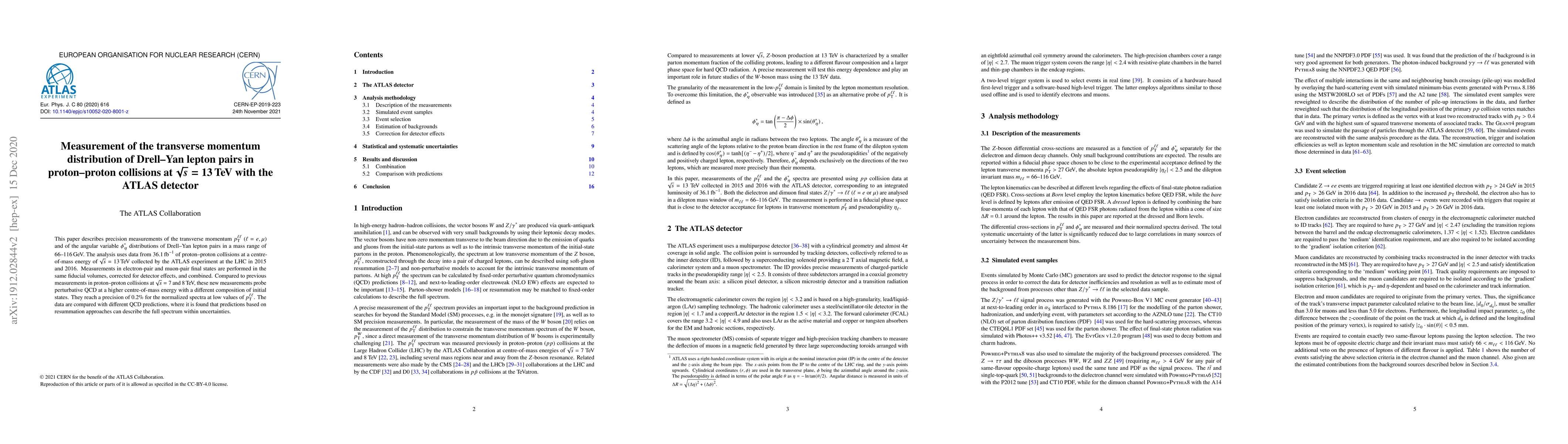 This paper presents precision measurements of the transverse momentum and angular distributions of Drell-Yan lepton pairs in proton-proton collisions at $\sqrt{s}=13$ TeV using the ATLAS detector, achieving a 0.2% precision. The results, compared to lower energy measurements, probe perturbative QCD and show that resummation predictions align well with the data.