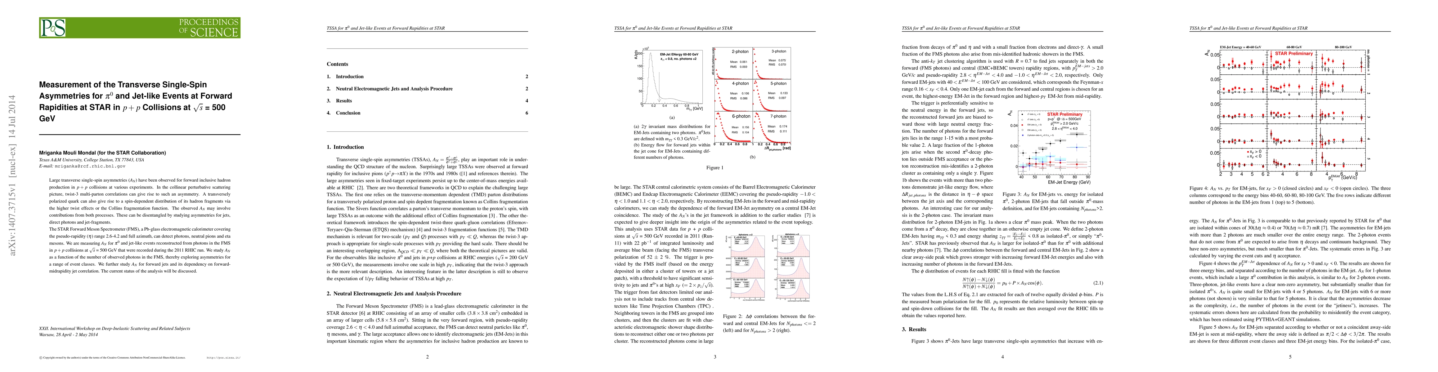 The STAR experiment measures transverse single-spin asymmetries ($A_N$) for $\pi^{0}$ and jet-like events in $p+p$ collisions at $\sqrt{s}$ = 500 GeV, aiming to disentangle contributions from twist-3 multi-parton correlations and Collins fragmentation functions. The analysis focuses on asymmetries as a function of photon multiplicity and jet correlation, using the STAR Forward Meson Spectrometer.