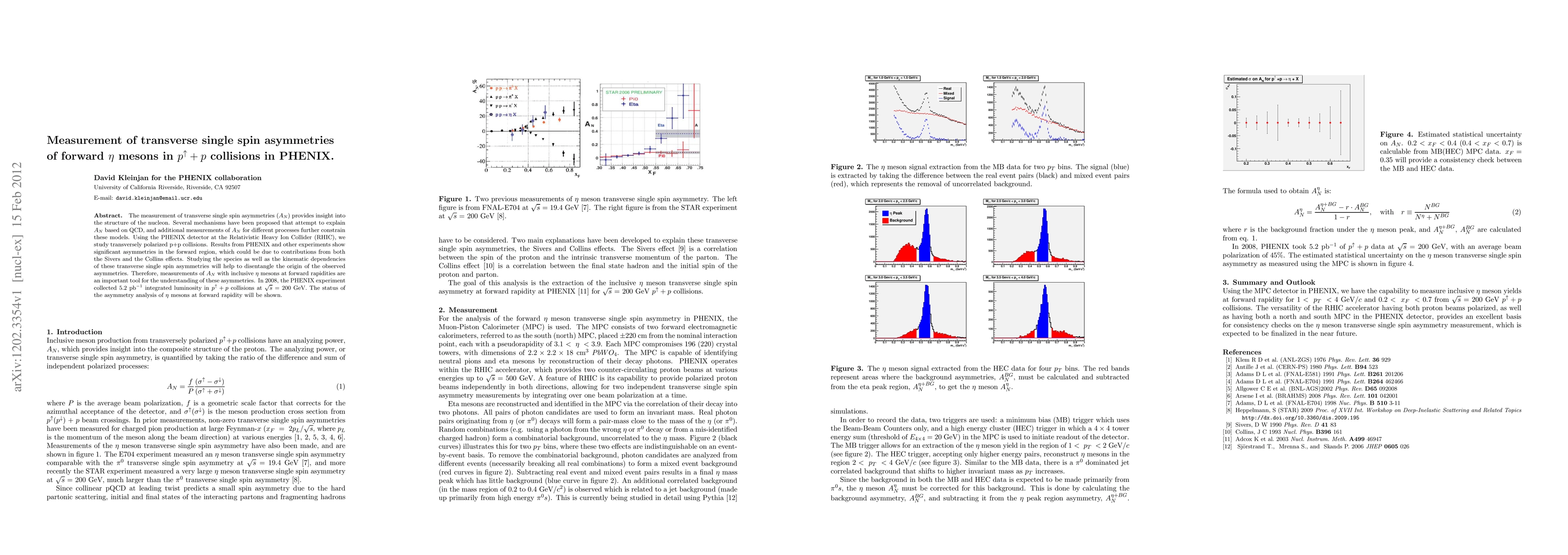 The PHENIX experiment at RHIC measures the transverse single spin asymmetry ($A_N$) in $p + p^\uparrow \rightarrow \eta + X$ collisions at $\sqrt{s}$ = 200 GeV to gain insight into nucleon structure. The observed significant asymmetries in the forward region may arise from the Sivers and Collins effects, and detailed analysis of these asymmetries is crucial for understanding their origins.