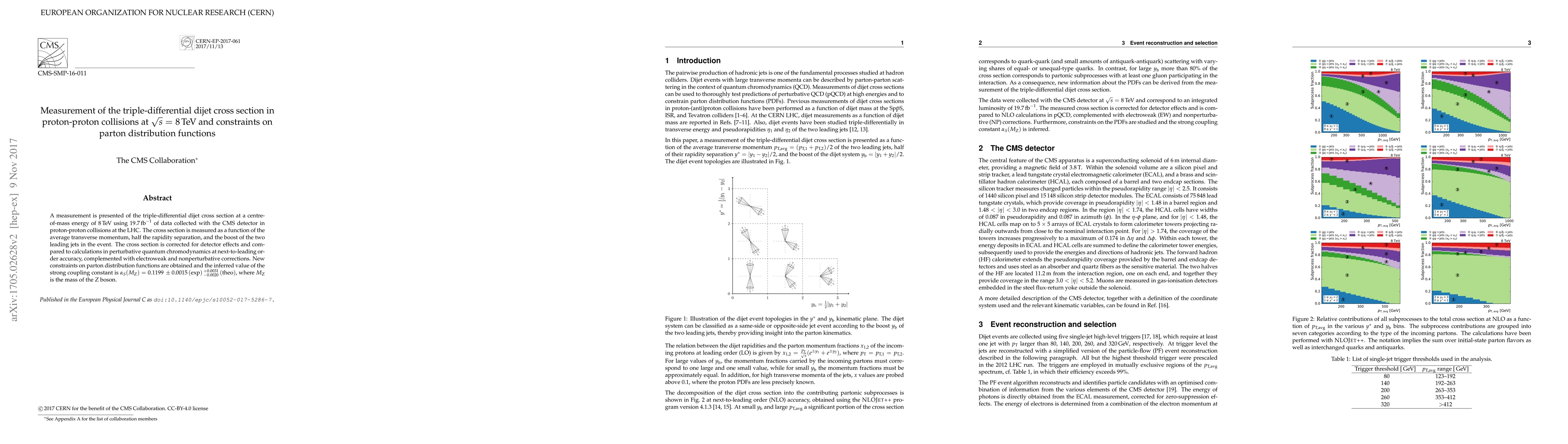Physicists at CMS measured the triple-differential dijet cross section in proton-proton collisions at 8 TeV, setting new constraints on parton distribution functions and refining the value of the strong coupling constant.