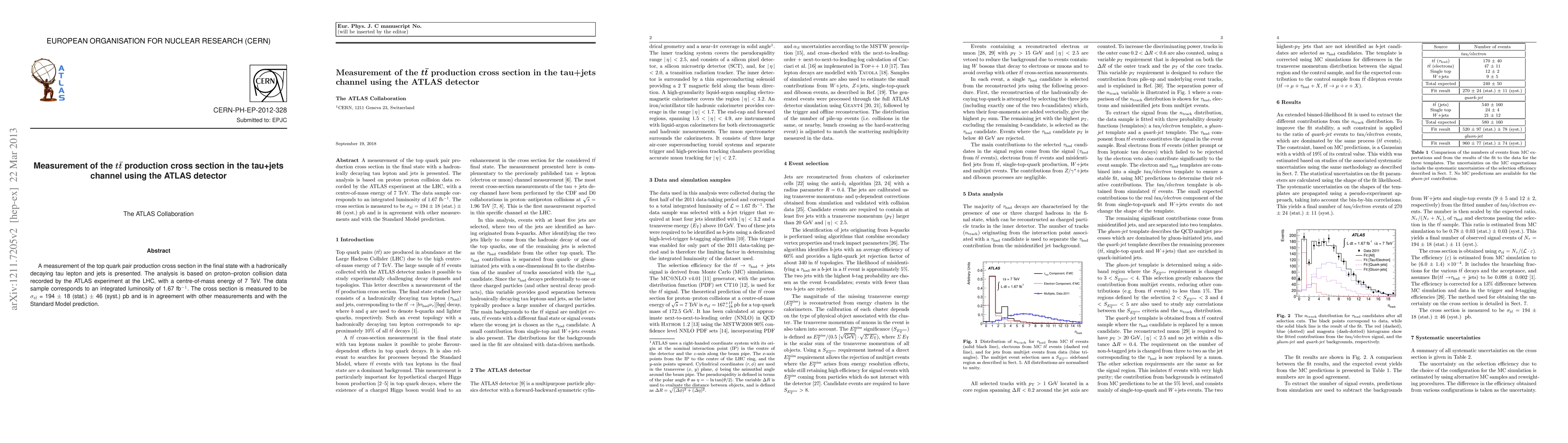 A measurement of the top quark pair production cross section in the final state with a hadronically decaying tau lepton and jets is presented. The analysis is based on proton-proton collision data recorded by the ATLAS experiment at the LHC, with a centre-of-mass energy of 7 TeV. The data sample corresponds to an integrated luminosity of 1.67 inverse femtobarns. The cross section is measured to be 194 +/- 18 (stat.) +/- 46 (syst.) pb and is in agreement with other measurements and with the Standard Model prediction.