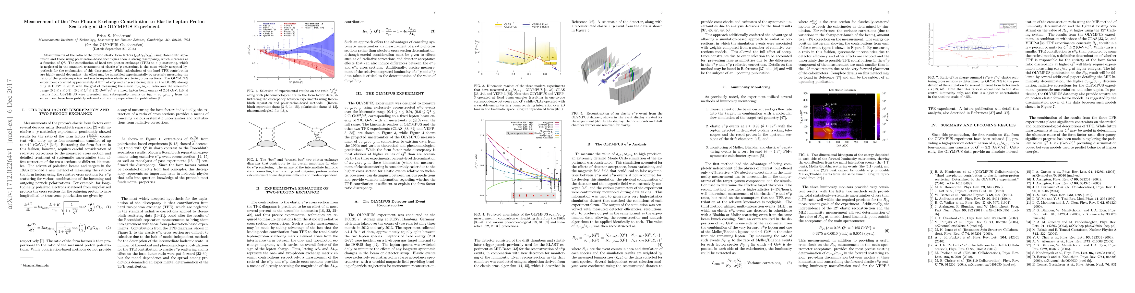 The OLYMPUS experiment aimed to measure the two-photon exchange contribution to elastic lepton-proton scattering by comparing positron-proton and electron-proton scattering cross sections. Initial results indicate a potential resolution to the discrepancy between different methods of measuring the proton's elastic form factors, which increases with $Q^2$.