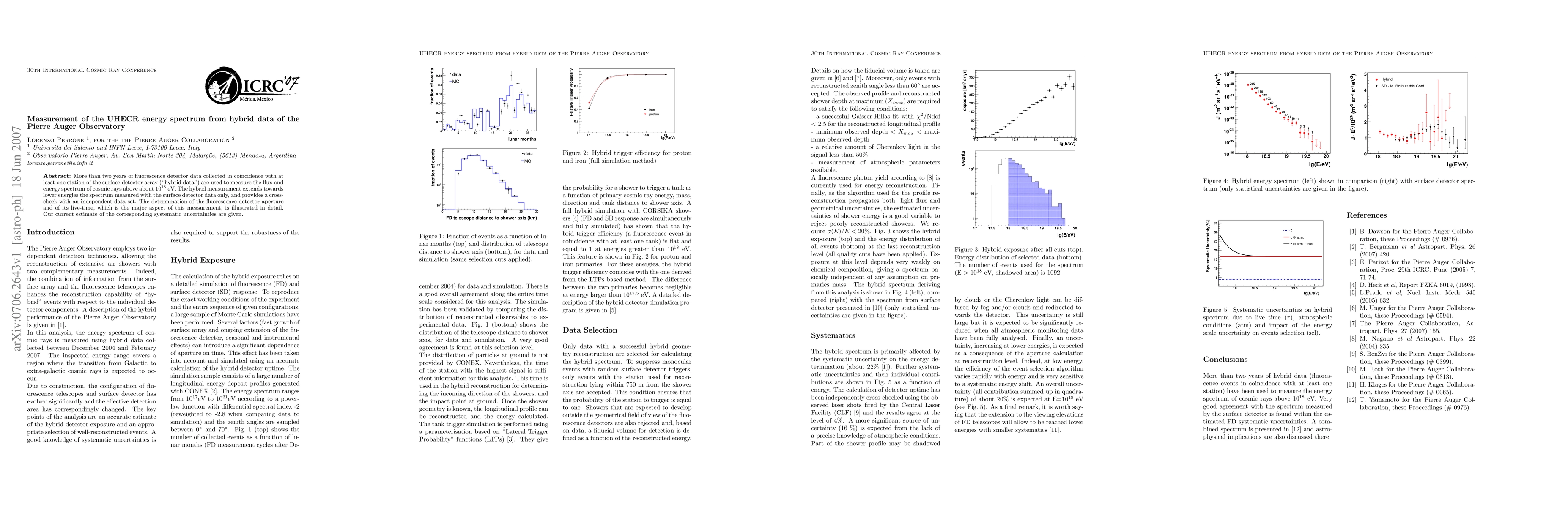 More than two years of fluorescence detector data collected in coincidence with at least one station of the surface detector array (``hybrid data'') are used to measure the flux and energy spectrum of cosmic rays above about 10$^{18}$ eV. The hybrid measurement extends towards lower energies the spectrum measured with the surface detector data only, and provides a cross-check with an independent data set. The determination of the fluorescence detector aperture and of its live-time, which is the major aspect of this measurement, is illustrated in detail. Our current estimate of the corresponding systematic uncertainties are given.