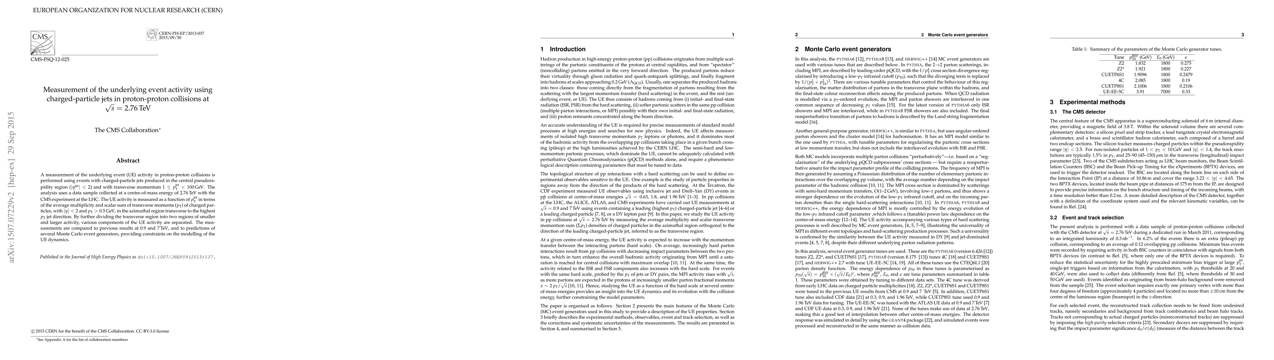 Researchers measured the activity of underlying events in proton-proton collisions at 2.76 TeV, finding correlations with charged-particle jet properties, which provide constraints on event generator models.