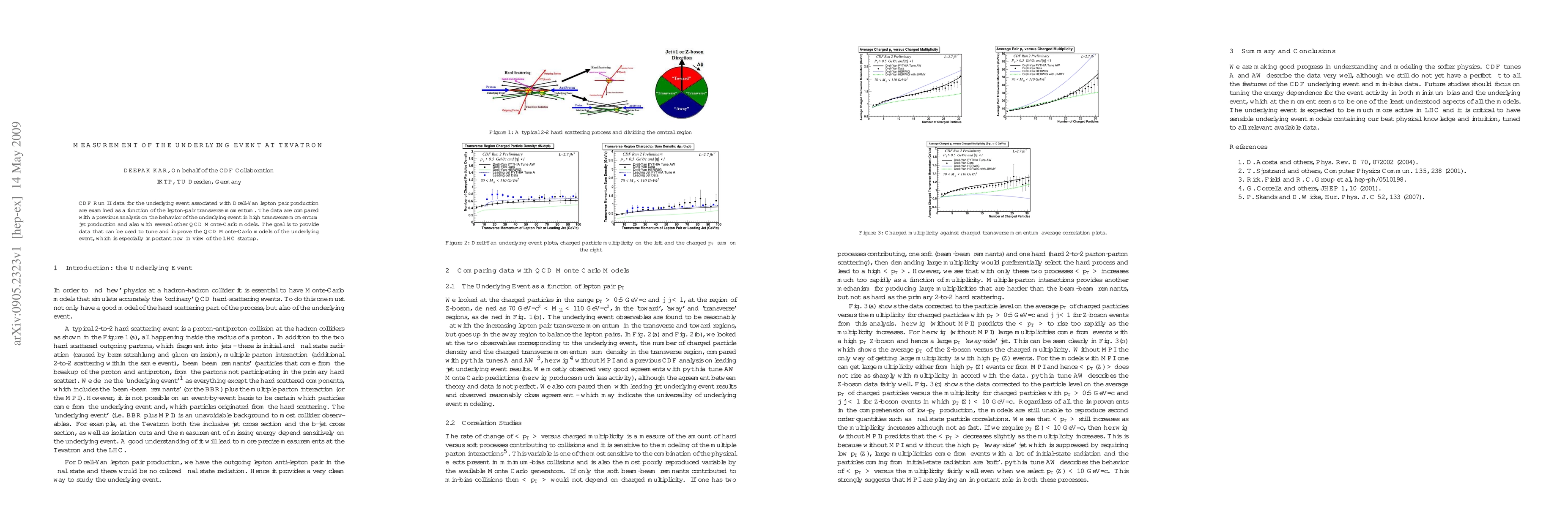 This paper examines CDF Run II data on the underlying event in Drell-Yan lepton pair production, comparing it with previous high transverse momentum jet production data and various QCD Monte-Carlo models to improve these models, crucial for the upcoming LHC experiments.