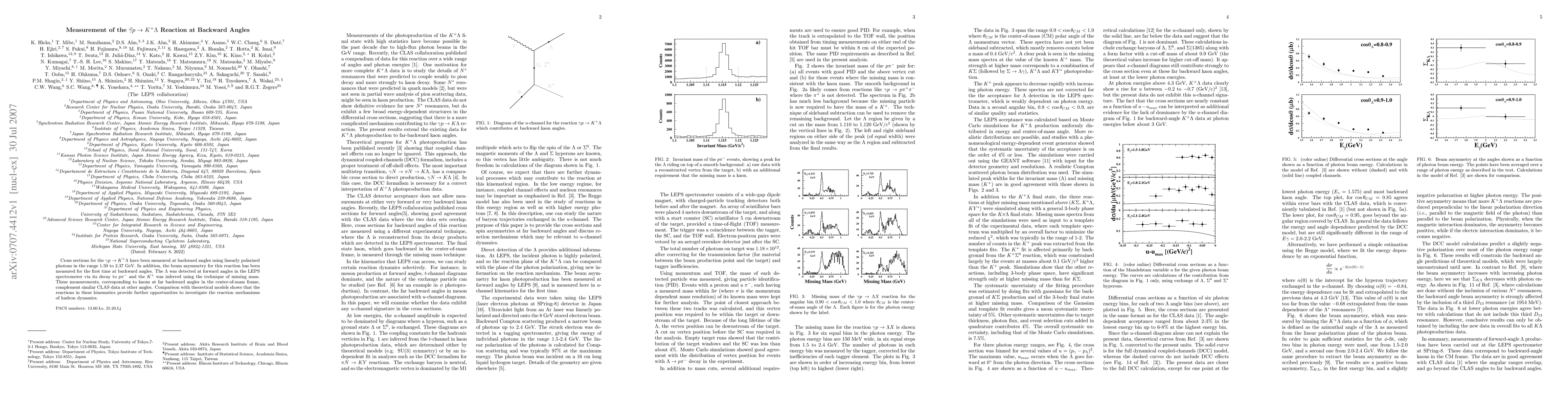 Cross sections for the $\gamma p \to K^+ \Lambda$ have been measured at backward angles using linearly polarized photons in the range 1.50 to 2.37 GeV. In addition, the beam asymmetry for this reaction has been measured for the first time at backward angles. The $\Lambda$ was detected at forward angles in the LEPS spectrometer via its decay to $p\pi^-$ and the K^+ was inferred using the technique of missing mass. These measurements, corresponding to kaons at far backward angles in the center-of-mass frame, complement similar CLAS data at other angles. Comparison with theoretical models shows that the reactions in these kinematics provide further opportunities to investigate the reaction mechanisms of hadron dynamics.