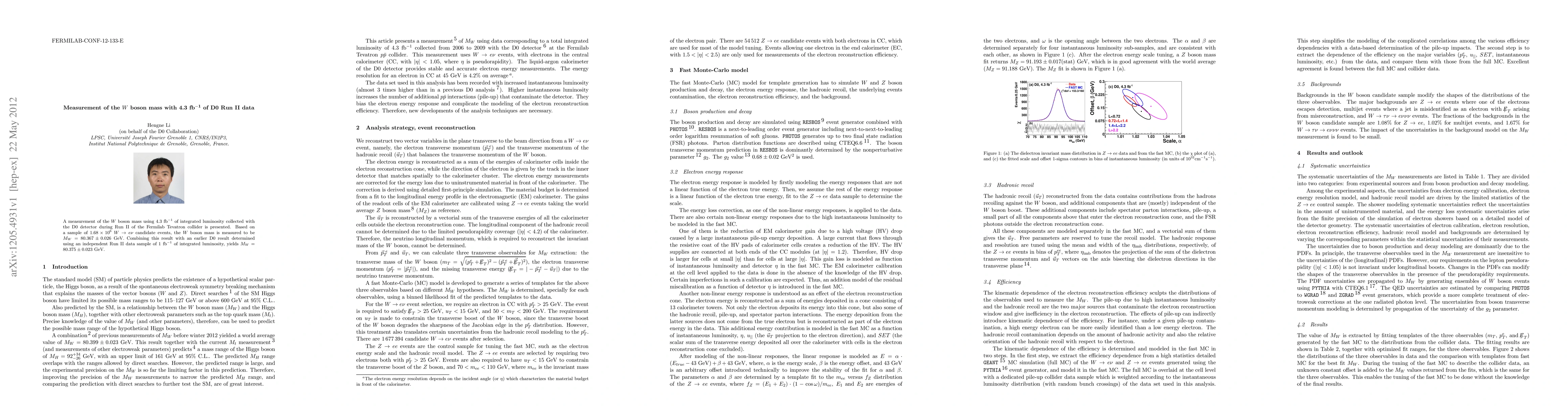 A measurement of the W boson mass using 4.3 fb^-1 of integrated luminosity collected with the D0 detector during Run II of the Fermilab Tevatron collider is presented. Based on a sample of 1.68 * 10^6 W->enu candidate events, the W boson mass is measured to be M_W = 80.367 +/- 0.026 GeV. Combining this result with an earlier D0 result determined using an independent Run II data sample of 1 fb^-1 of integrated luminosity, yields M_W = 80.375 +/- 0.023 GeV.