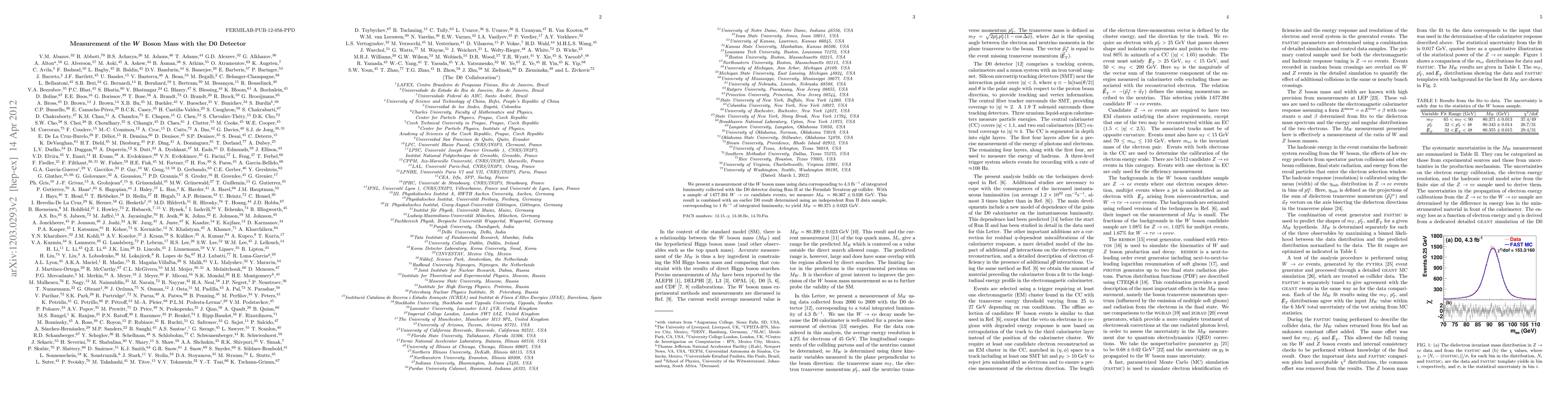 This paper reports a precise measurement of the W boson mass using data from the D0 detector at the Fermilab Tevatron, yielding M_W = 80.367 +/- 0.026 GeV. The result is further refined by combining it with an earlier D0 measurement, resulting in M_W = 80.375 +/- 0.023 GeV.