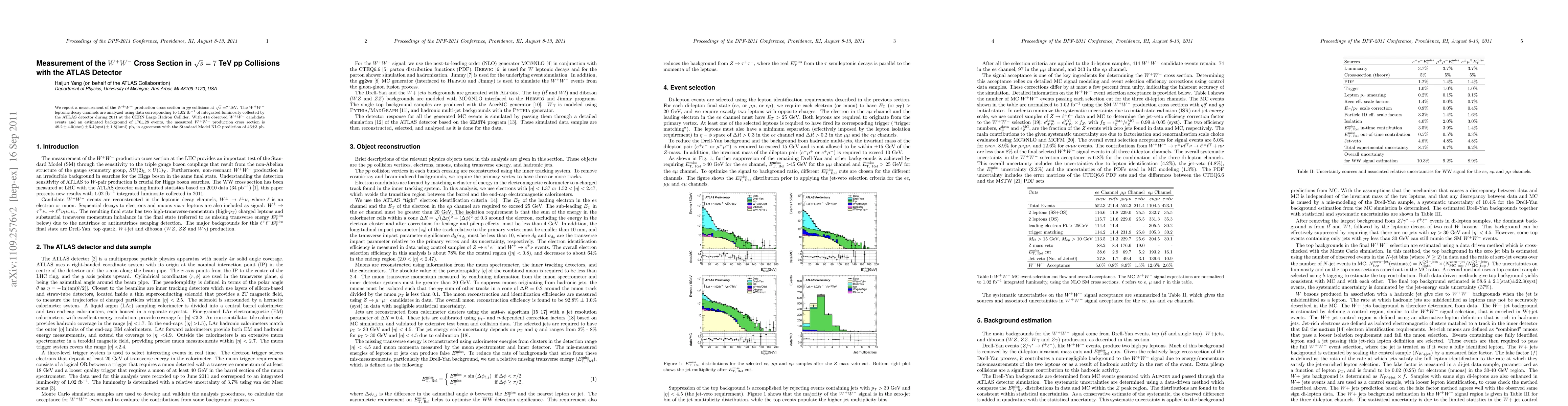 This paper reports a measurement of the WW production cross section in 7 TeV proton-proton collisions using the ATLAS detector at the LHC, finding a value of $48.2 \pm 4.0 {\rm(stat)} \pm 6.4 {\rm(syst)} \pm 1.8 {\rm(lumi)}$ pb, consistent with the Standard Model prediction of 46$\pm$3 pb.