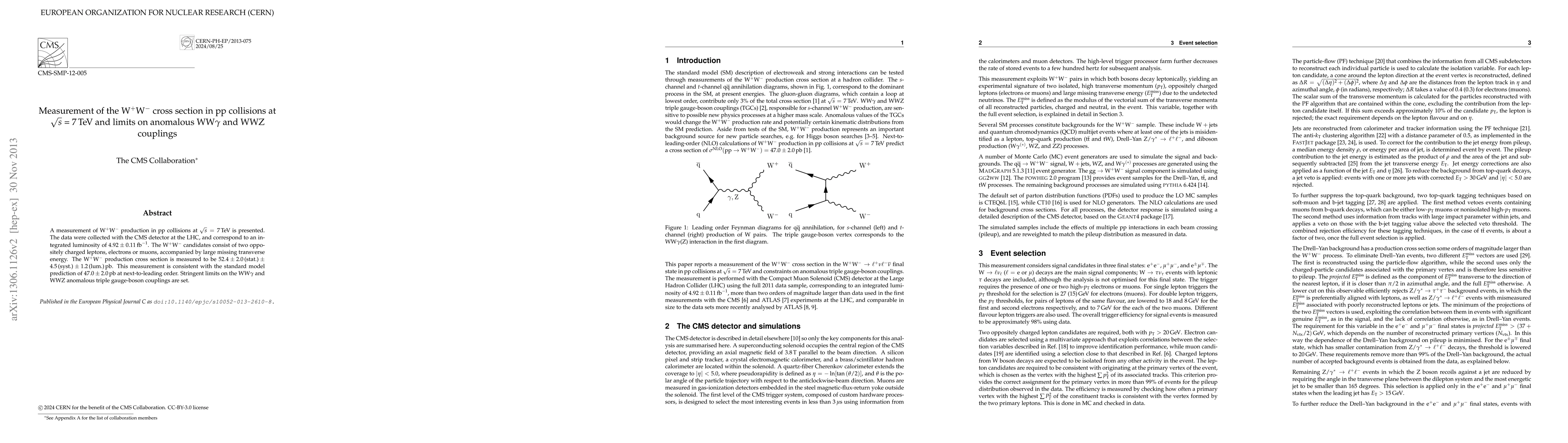 This paper measures the W+W- production cross section in proton-proton collisions at 7 TeV using the CMS detector, finding it consistent with the Standard Model prediction, and sets stringent limits on anomalous WW gamma and WWZ couplings.