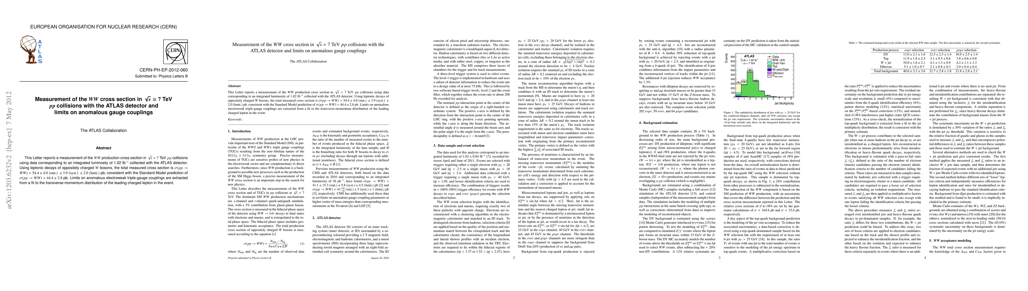 This paper measures the WW production cross section in 7 TeV proton-proton collisions using the ATLAS detector, finding a value consistent with Standard Model predictions. It also sets limits on anomalous gauge couplings based on the transverse-momentum distribution of leading charged leptons.