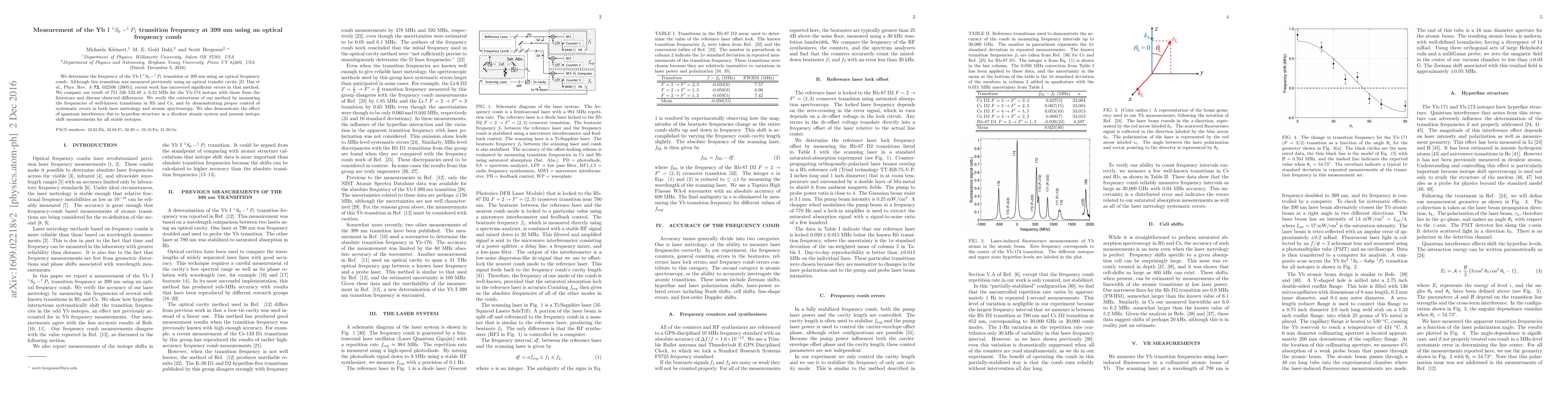 Researchers used an optical frequency comb to accurately measure the Yb I $^1S_0 - ^1P_1$ transition at 399 nm, correcting previous errors in the method.