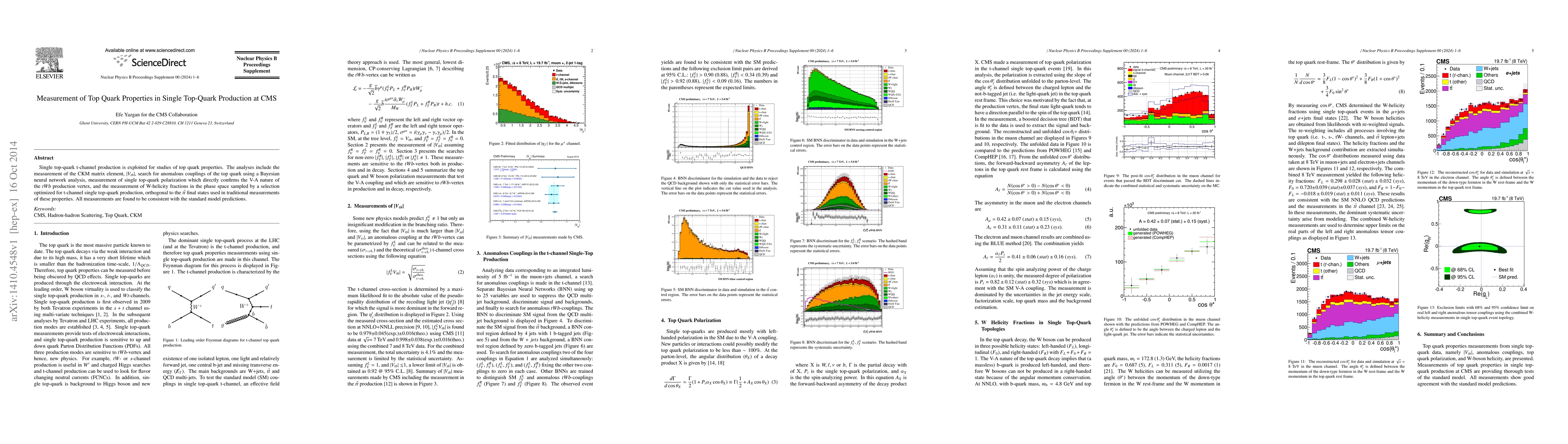 This paper investigates top quark properties in single top-quark t-channel production using CMS data, measuring the CKM matrix element $|V_{tb}|$, searching for anomalous couplings, and confirming the V-A nature of the $tWb$ vertex through polarization measurements. All results are consistent with standard model predictions.