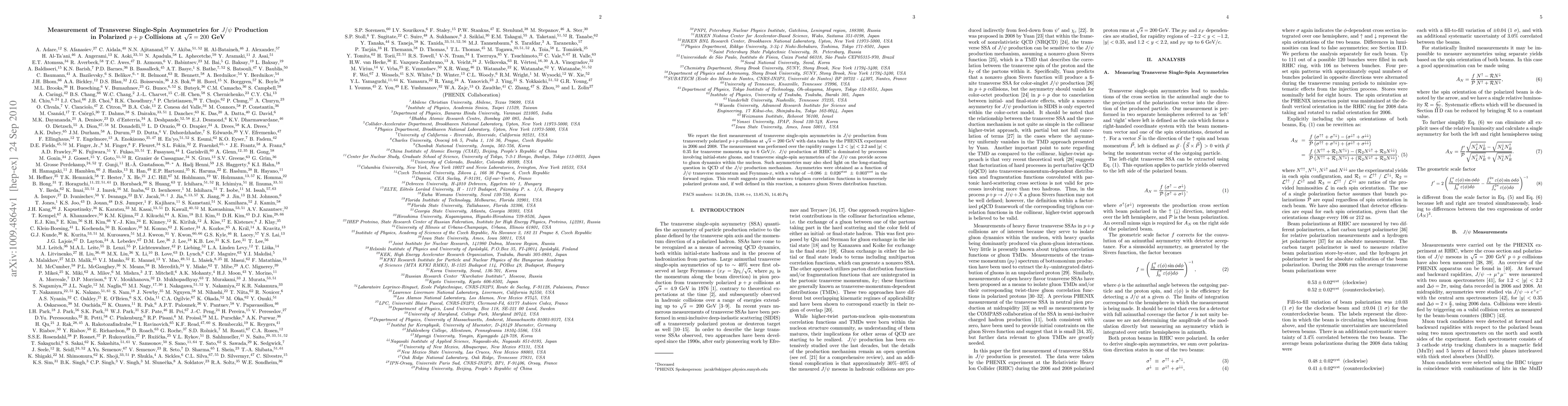 This study reports the first measurement of transverse single-spin asymmetries in $J/\psi$ production from polarized proton collisions at $\sqrt{s} = 200$ GeV, revealing potential nonzero trigluon correlations and a possible nonzero gluon Sivers distribution function. The observed asymmetry value of $-0.086 \pm 0.026^{\rm stat} \pm 0.003^{\rm syst}$ suggests insights into gluon dynamics within nucleons.