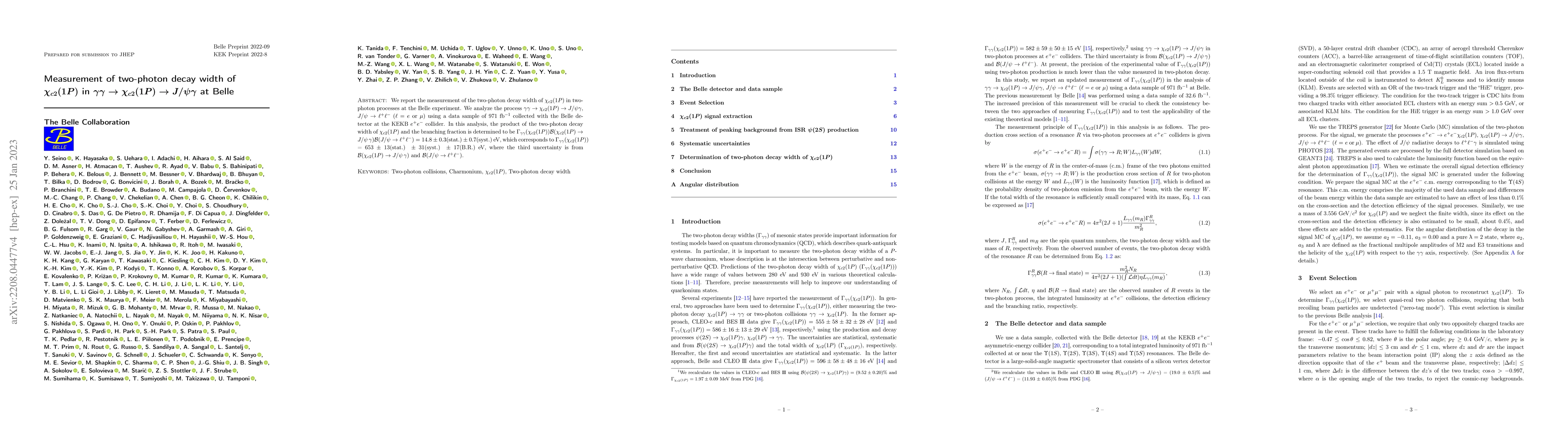 The Belle experiment measures the two-photon decay width of $\chi_{c2}(1P)$ in the process $\gamma \gamma \rightarrow \chi_{c2}(1P) \rightarrow J/\psi\gamma$, determining it to be $\Gamma_{\gamma \gamma}(\chi_{c2}(1P)) = 653 \pm 13$ (stat.) $\pm 31$ (syst.) $\pm$ 17 (B.R.) eV.