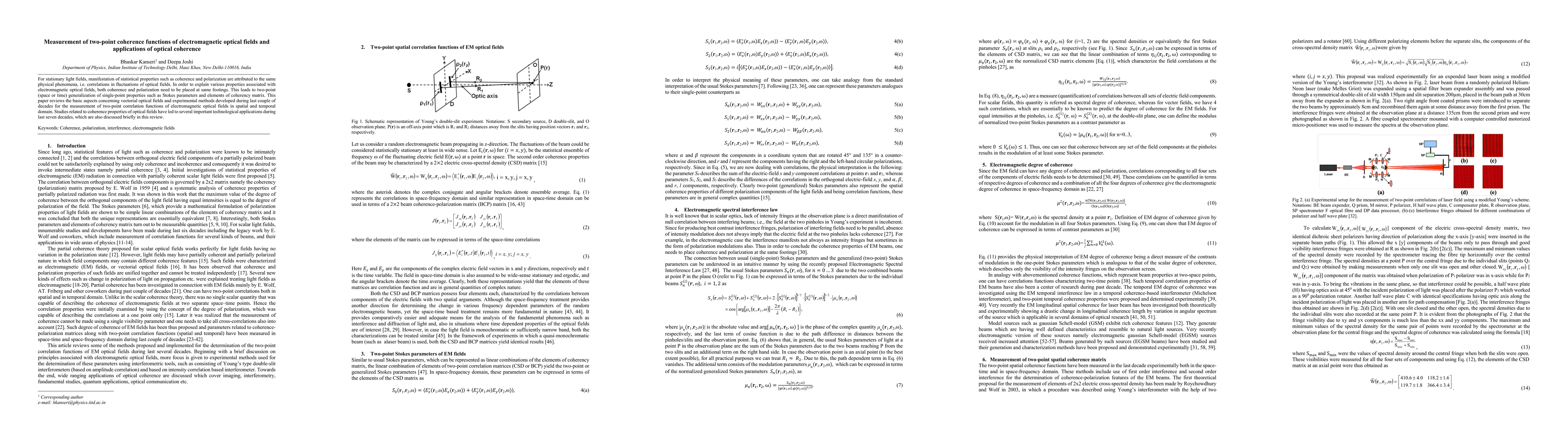 This paper reviews methods for measuring two-point coherence functions of electromagnetic optical fields in space and time, highlighting their applications in various technologies.