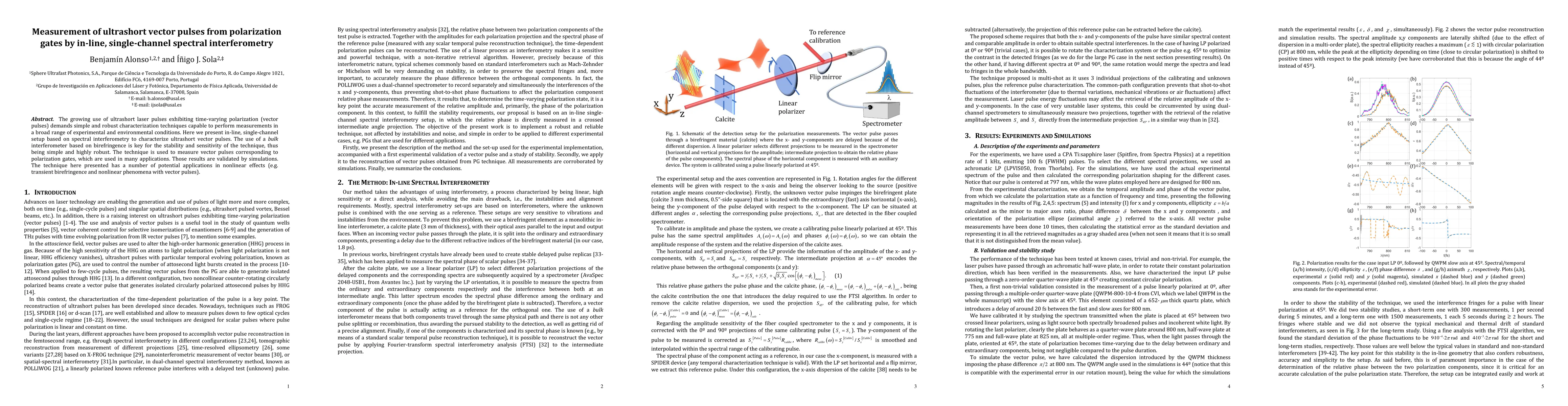 The growing use of ultrashort laser pulses exhibiting time-varying polarization (vector pulses) demands simple and robust characterization techniques capable to perform measurements in a broad range of experimental and environmental conditions. Here we present in-line, single-channel setup based on spectral interferometry to characterize ultrashort vector pulses. The use of a bulk interferometer based on birefringence is key for the stability and sensitivity of the technique, thus being simple and highly robust. The technique is used to measure vector pulses corresponding to polarization gates, which are used in many applications. Those results are validated by simulations. The technique here presented has a number of potential applications in nonlinear effects (e.g. transient birefringence and nonlinear phenomena with vector pulses).