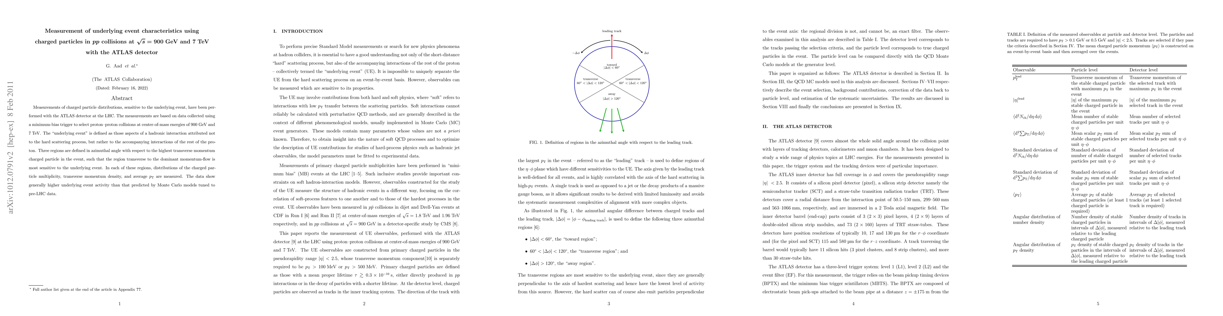This paper measures charged particle distributions in proton-proton collisions at 900 GeV and 7 TeV using the ATLAS detector, focusing on the "underlying event" which reflects interactions outside the main scattering process. The results indicate higher underlying event activity than predicted by existing Monte Carlo models.