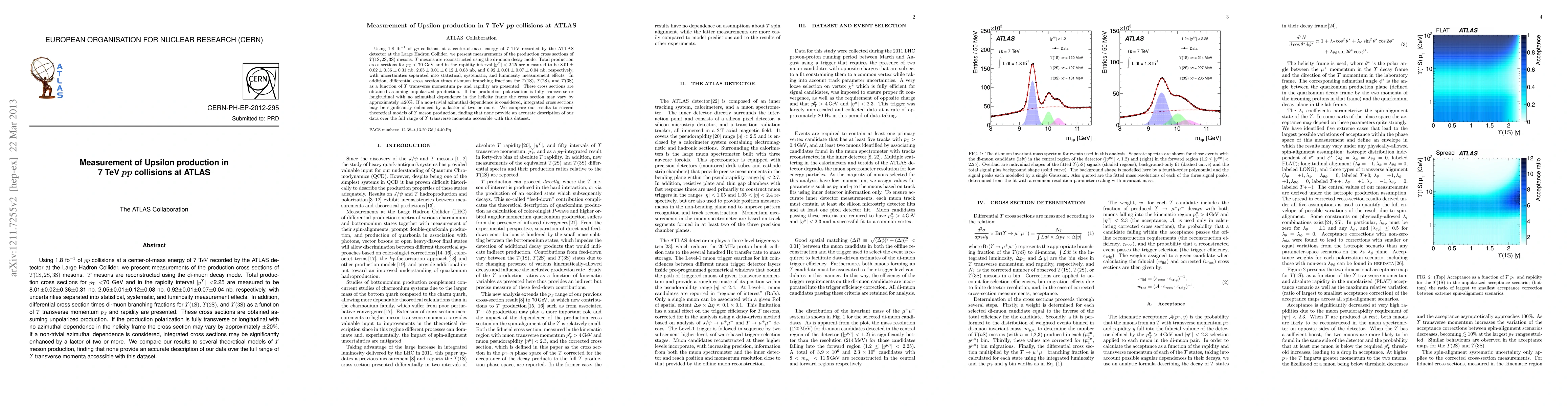 Researchers at ATLAS measured Upsilon meson production in 7 TeV pp collisions, finding total cross sections for Upsilon(1S,2S,3S) mesons with varying uncertainties, and noting discrepancies between their results and theoretical models.