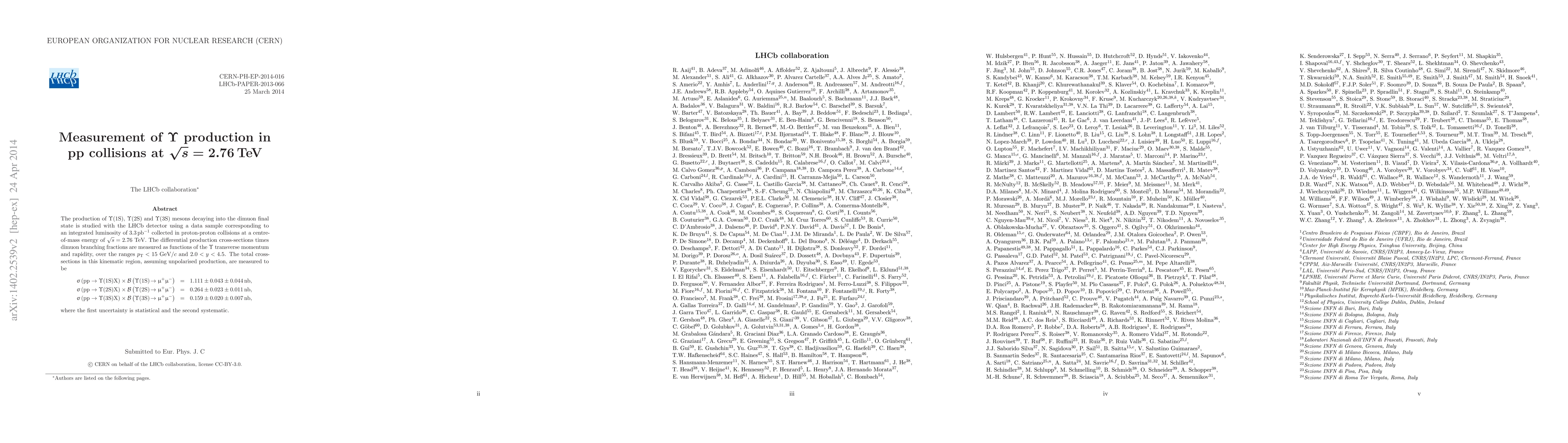 This paper measures the production cross-sections of Upsilon mesons (1S, 2S, and 3S) in proton-proton collisions at sqrt{s}=2.76 TeV using the LHCb detector, finding the total cross-sections for each state within specified p_T and y ranges. The results are reported with both statistical and systematic uncertainties.