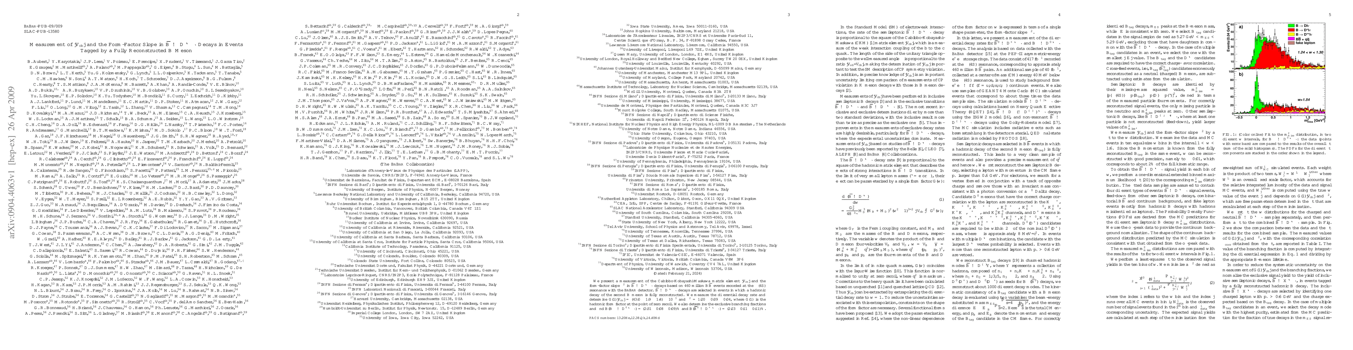 This paper measures the Cabibbo-Kobayashi-Maskawa matrix element |V_cb| and the form-factor slope rho^2 in Bbar -> Dl- nubar decays using data from 460 million BBar events. The results are G(1) |V_cb| = (43.0 ± 1.9 ± 1.4)×10^-3 and rho^2 = 1.20 ± 0.09 ± 0.04.
