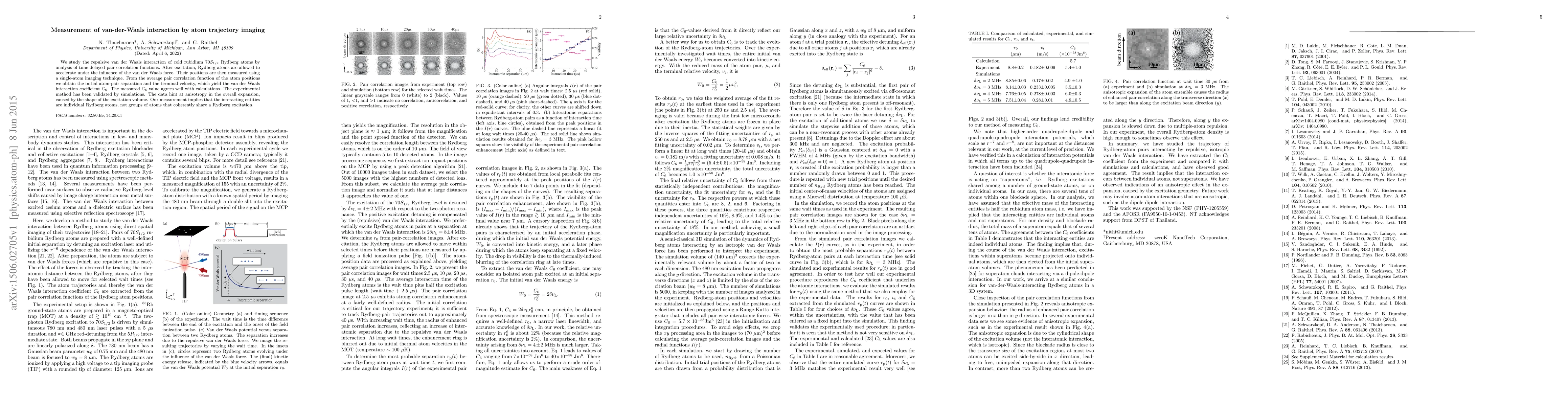 The study measures the van der Waals interaction between cold rubidium 70S_1/2 Rydberg atoms using time-delayed pair correlation functions. Atom positions are determined via single-atom imaging after excitation, allowing for the calculation of the van der Waals interaction coefficient C_6.