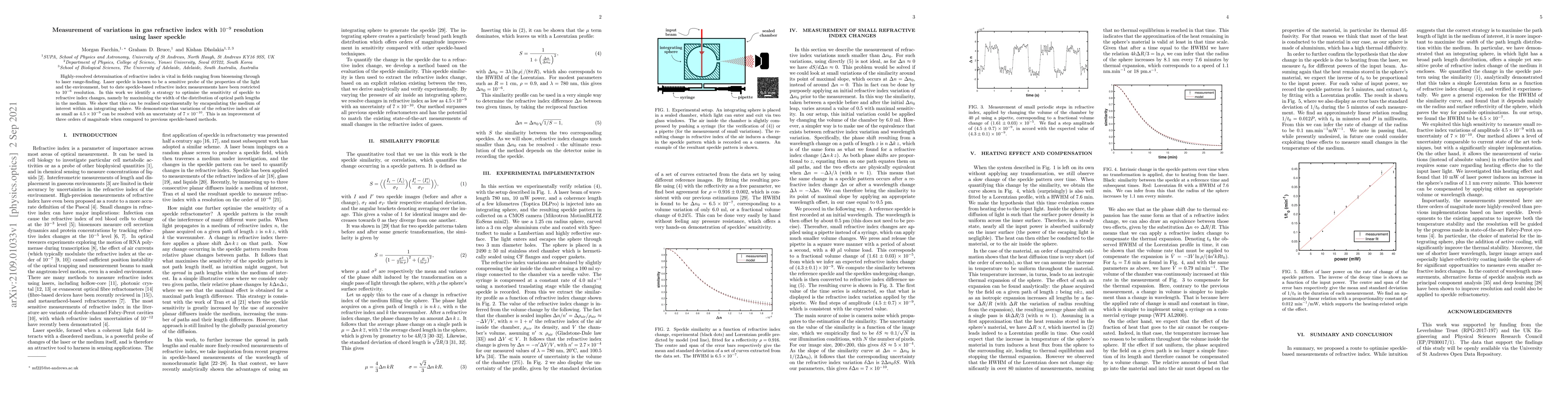 Highly-resolved determination of refractive index is vital in fields ranging from biosensing through to laser range-finding. Laser speckle is known to be a sensitive probe of the properties of the light and the environment, but to date speckle-based refractive index measurements have been restricted to $10^{-6}$ resolution. In this work we identify a strategy to optimise the sensitivity of speckle to refractive index changes, namely by maximising the width of the distribution of optical path lengths in the medium. We show that this can be realised experimentally by encapsulating the medium of interest within an integrating sphere. We demonstrate that variations of the refractive index of air as small as $4.5\times10^{-9}$ can be resolved with an uncertainty of $7\times10^{-10}$. This is an improvement of three orders of magnitude when compared to previous speckle-based methods.