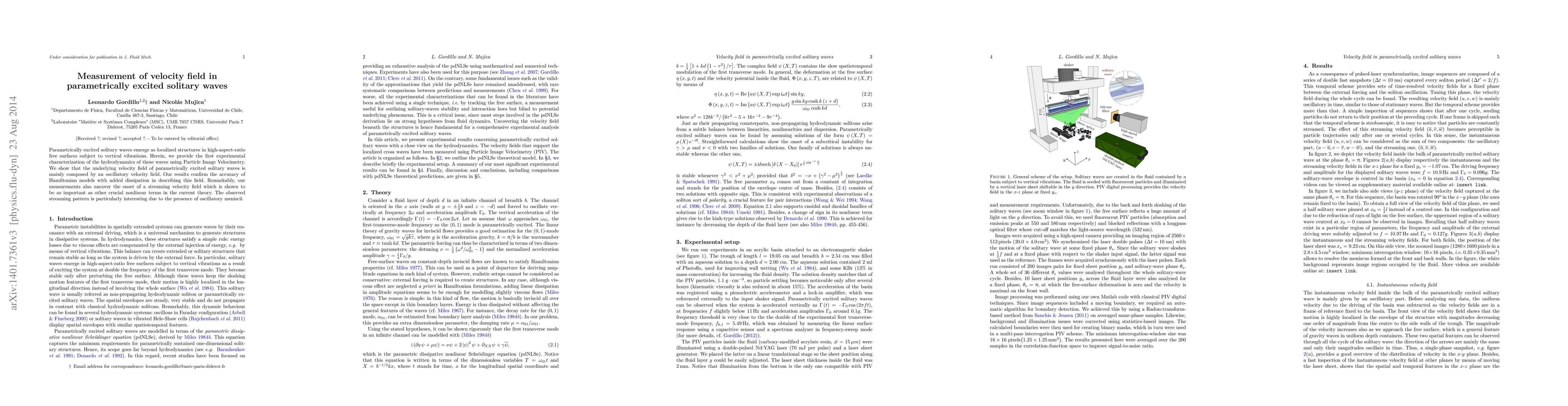 This study experimentally characterizes the velocity field of parametrically excited solitary waves using Particle Image Velocimetry, revealing an oscillatory velocity field and confirming the accuracy of Hamiltonian models. Additionally, it uncovers a significant streaming velocity field, challenging current nonlinear theories.
