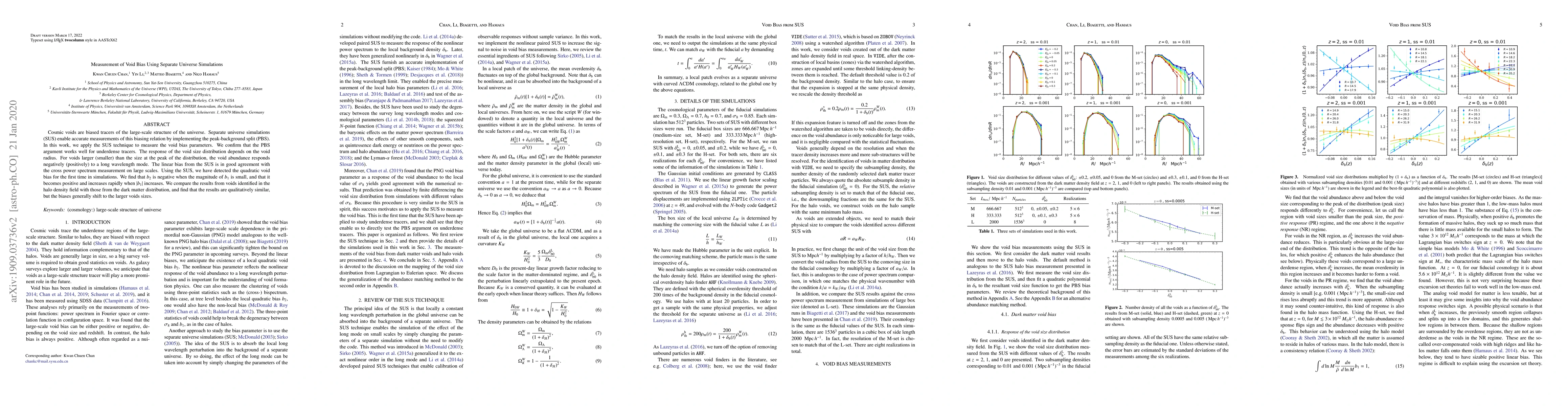 This paper uses separate universe simulations to measure void bias parameters, confirming the peak-background split method's effectiveness for underdense tracers. It detects quadratic void bias for the first time, showing that $b_2$ is negative for small $b_1$ and becomes positive and increases rapidly with larger $|b_1|$.