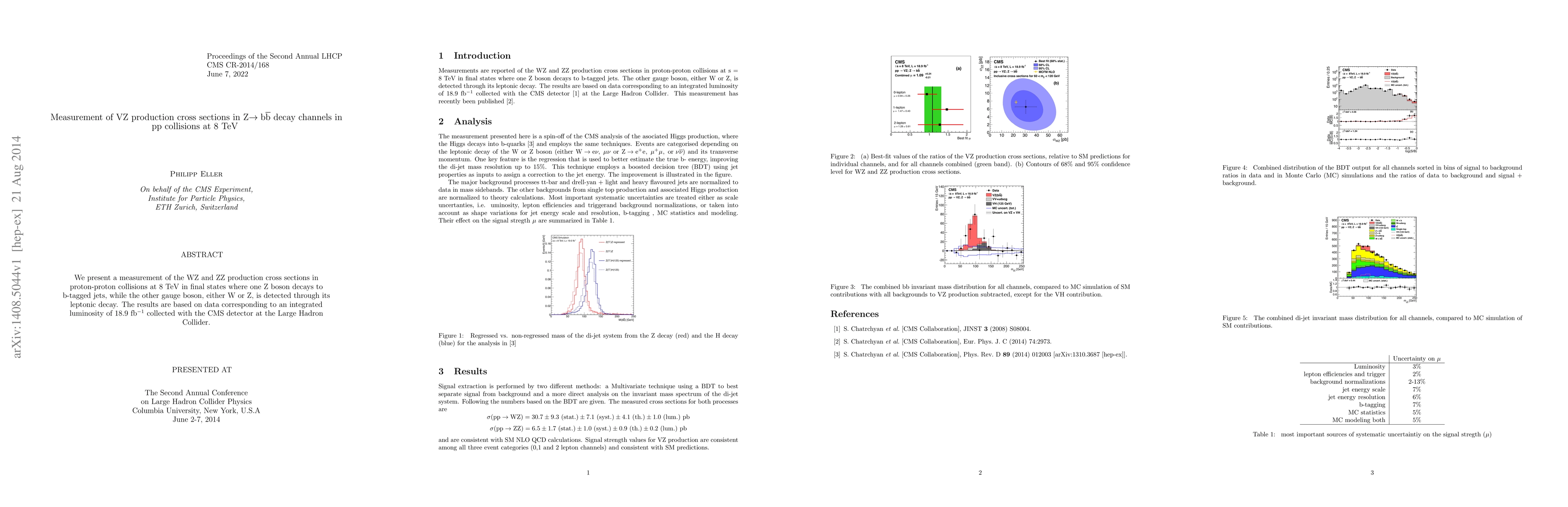 We present a measurement of the WZ and ZZ production cross sections in proton-proton collisions at 8 TeV in final states where one Z boson decays to b-tagged jets, while the other gauge boson, either W or Z, is detected through its leptonic decay. The results are based on data corresponding to an integrated luminosity of 18.9 /fb collected with the CMS detector at the Large Hadron Collider.