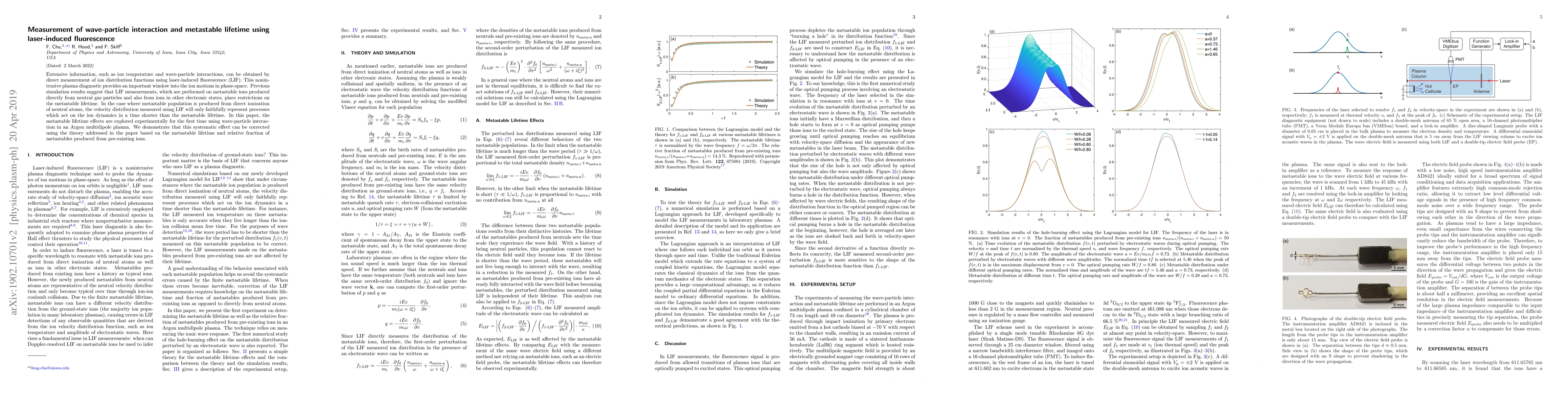 This paper experimentally investigates wave-particle interactions and metastable lifetimes in Argon plasma using laser-induced fluorescence (LIF). The study corrects systematic effects due to metastable lifetime on LIF measurements, providing a more accurate view of ion dynamics in plasma.