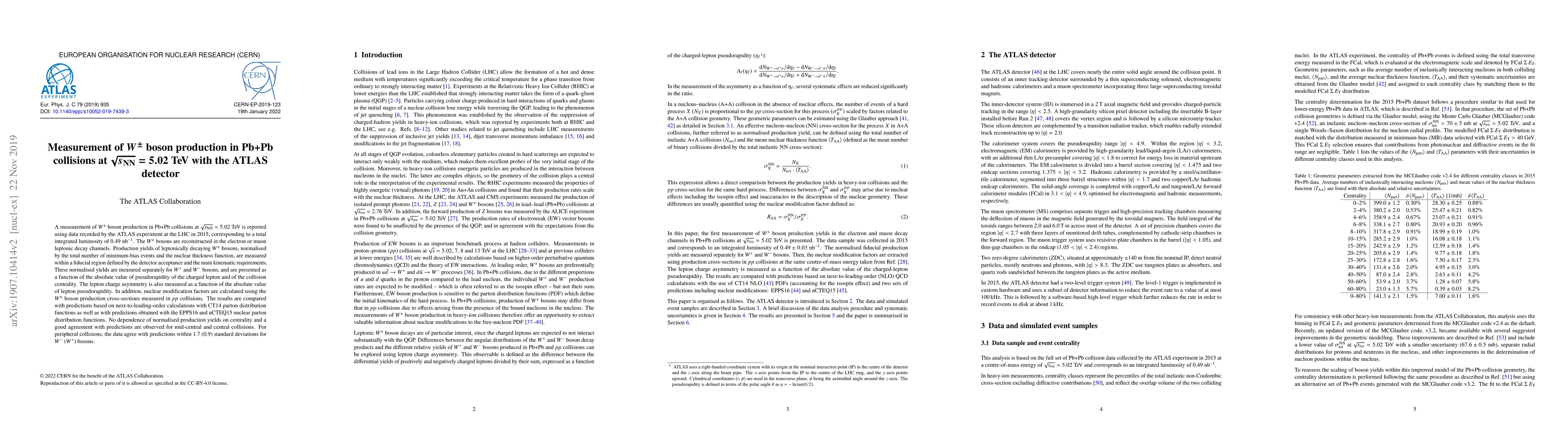 This paper reports on the measurement of $W^\pm$ boson production in lead-lead collisions at $\sqrt{s_\mathrm{NN}} = 5.02$ TeV using the ATLAS detector, finding normalized production yields and lepton charge asymmetry, and comparing results to theoretical predictions. Agreement with predictions is observed for mid-central and central collisions, with peripheral collision data within 1.7 (0.9) standard deviations for $W^-$ ($W^+$) bosons.