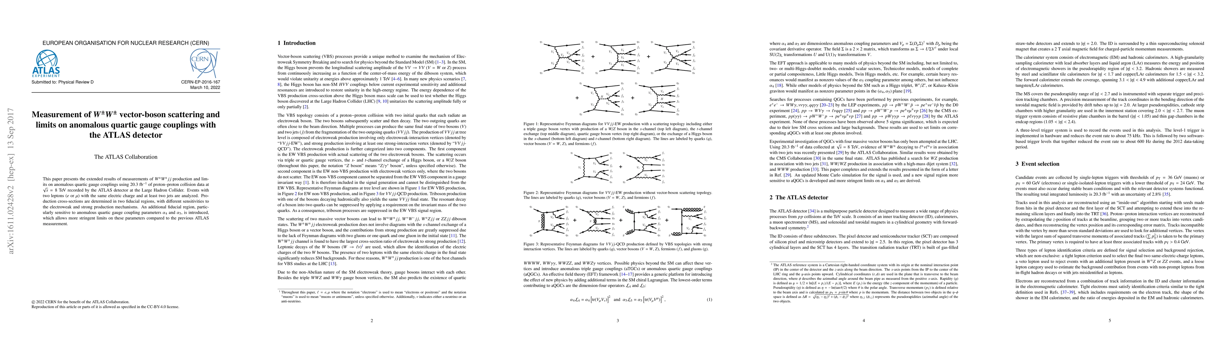 This paper reports on the measurement of $W^{\pm}W^{\pm}jj$ production and sets limits on anomalous quartic gauge couplings using 20.3 fb$^{-1}$ of data from the ATLAS detector at the LHC. The study introduces a new fiducial region to more stringently constrain the parameters $\alpha_4$ and $\alpha_5$.