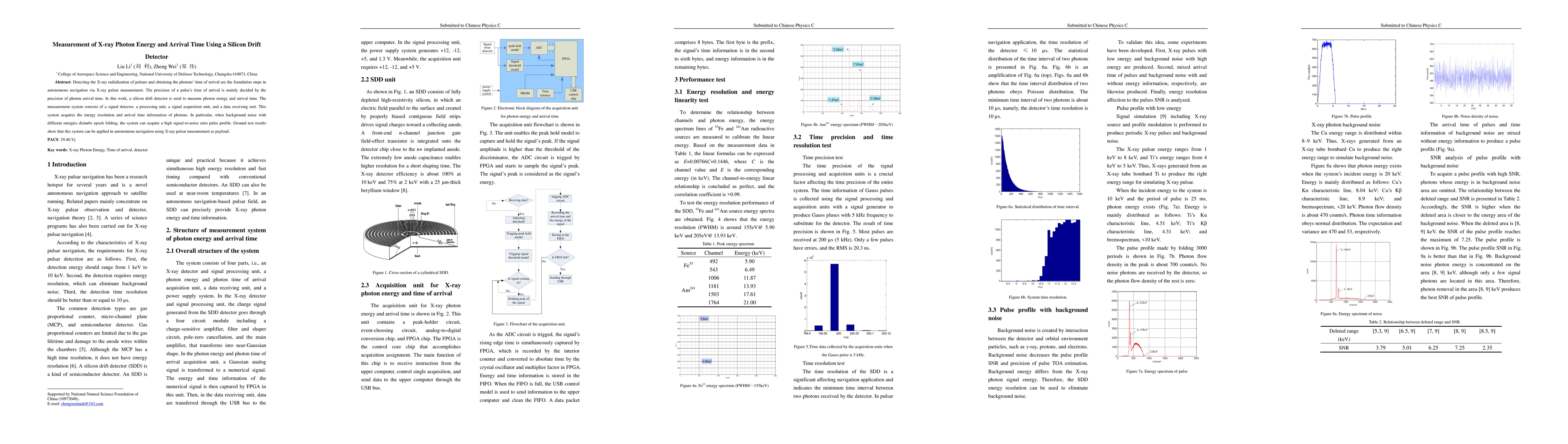 This paper presents a silicon drift detector system for measuring X-ray photon energy and arrival time, crucial for autonomous navigation via X-ray pulsar measurement. The system achieves high signal-to-noise ratios even with background noise, demonstrating potential for use in X-ray pulsar-based navigation.