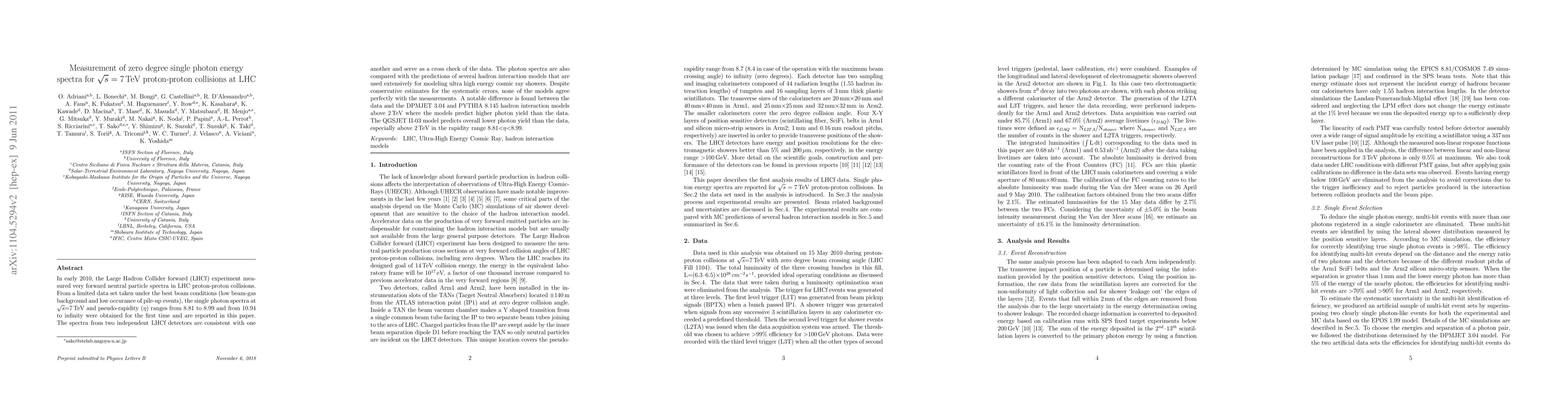 In early 2010, the Large Hadron Collider forward (LHCf) experiment measured