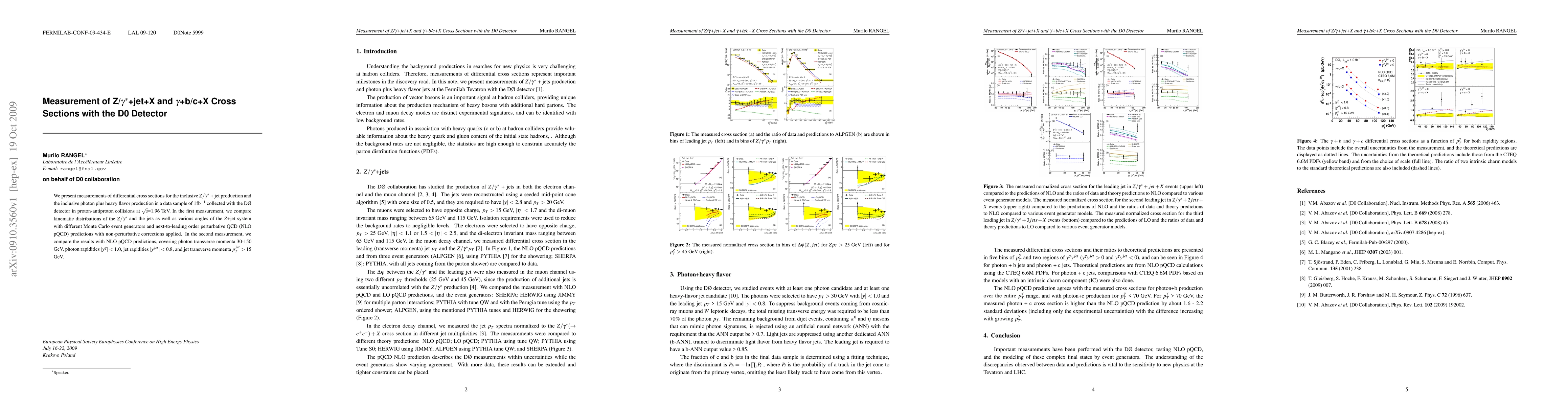 We present measurements of differential cross sections for the inclusive $Z/\gamma^*$ + jet production and the inclusive photon plus heavy flavor production in a data sample of 1fb$^{-1}$ collected with the D{\O}detector in proton-antiproton collisions at $\sqrt{s}$=1.96 TeV. In the first measurement, we compare kinematic distributions of the $Z/\gamma^*$ and the jets as well as various angles of the $Z$+jet system with different Monte Carlo event generators and next-to-leading order perturbative QCD (NLO pQCD) predictions with non-perturbative corrections applied. In the second measurement, we compare the results with NLO pQCD predictions, covering photon transverse momenta 30-150 GeV, photon rapidities $|y^{\gamma}| < 1.0$, jet rapidities $|y^{jet}| < 0.8$, and jet transverse momenta $p_{T}^{jet} > 15$ GeV.