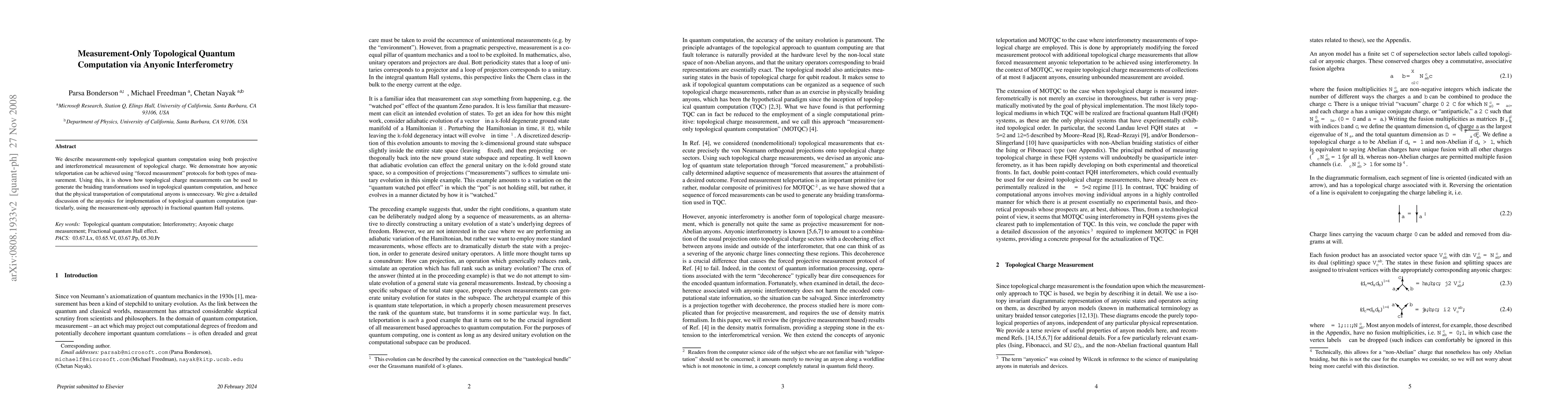 This paper proposes a measurement-only topological quantum computation method using projective and interferometric measurements of topological charge, enabling anyonic teleportation via "forced measurement" protocols. It demonstrates that braiding transformations can be generated through these measurements, eliminating the need for physical anyon transportation in fractional quantum Hall systems.